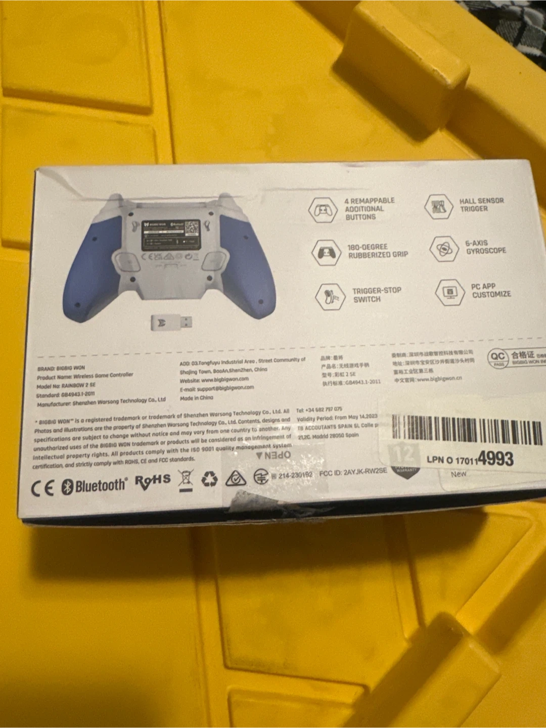 This BIGBIG WON controller is designed for Rainbow 2 SE. It features 4 remappable buttons, a 180-degree rubberized grip, and Hall sensor triggers. It's compatible with Windows 10/11, Switch, Android, and iOS.