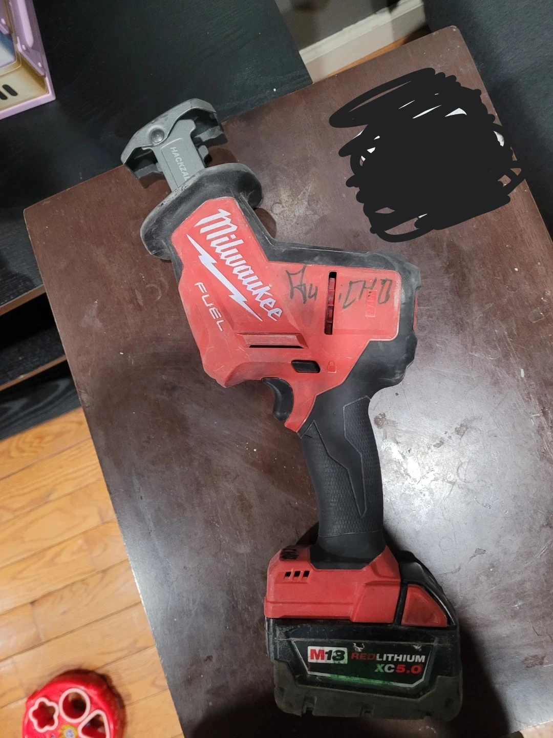 This is a Milwaukee M18 FUEL Sawzall reciprocating saw. It includes a Milwaukee M18 REDLITHIUM XC5.0 battery. This saw is designed for tough cutting jobs.