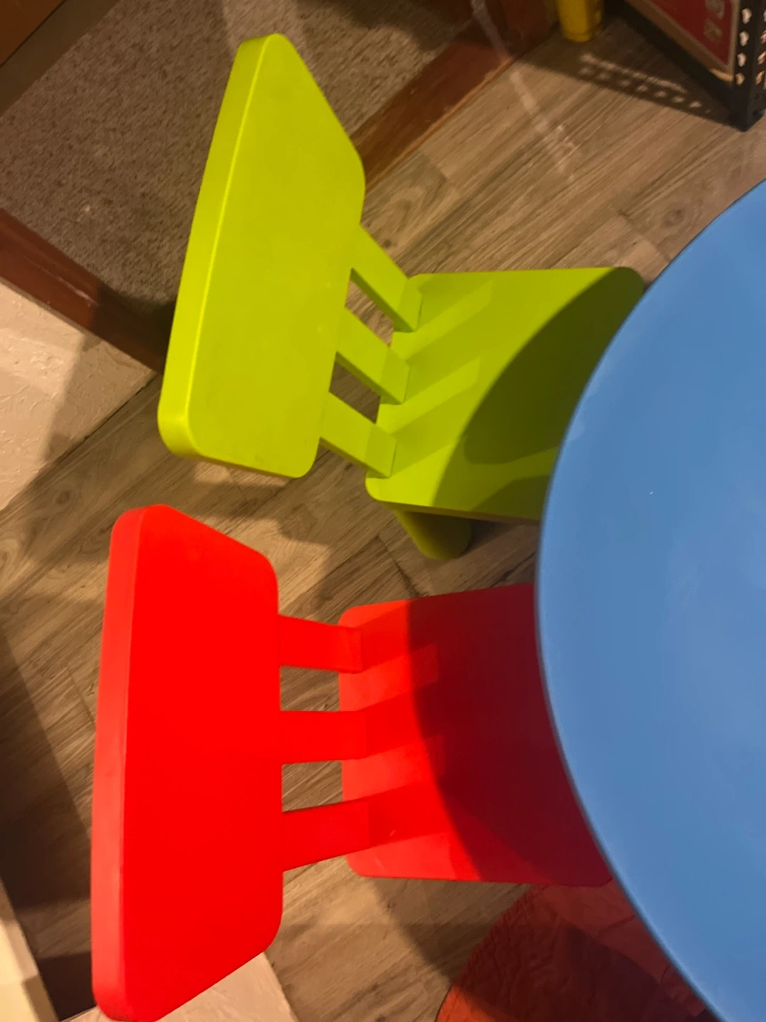 Selling a cute RPM kids table and chairs set! The table is a nice light blue and comes with one red chair and one green chair. Perfect for arts and crafts or snack time for the little ones