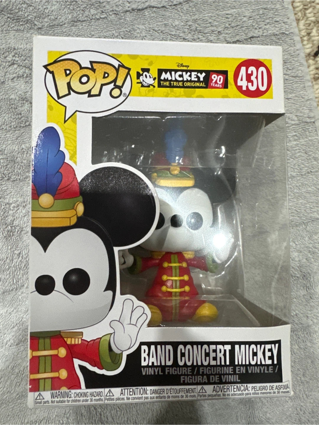 This is a Funko Pop! vinyl figure of Band Concert Mickey Mouse. It's part of the Disney collection and is item number 430. The figure comes in its original box. It's a great collectible for Disney fans!