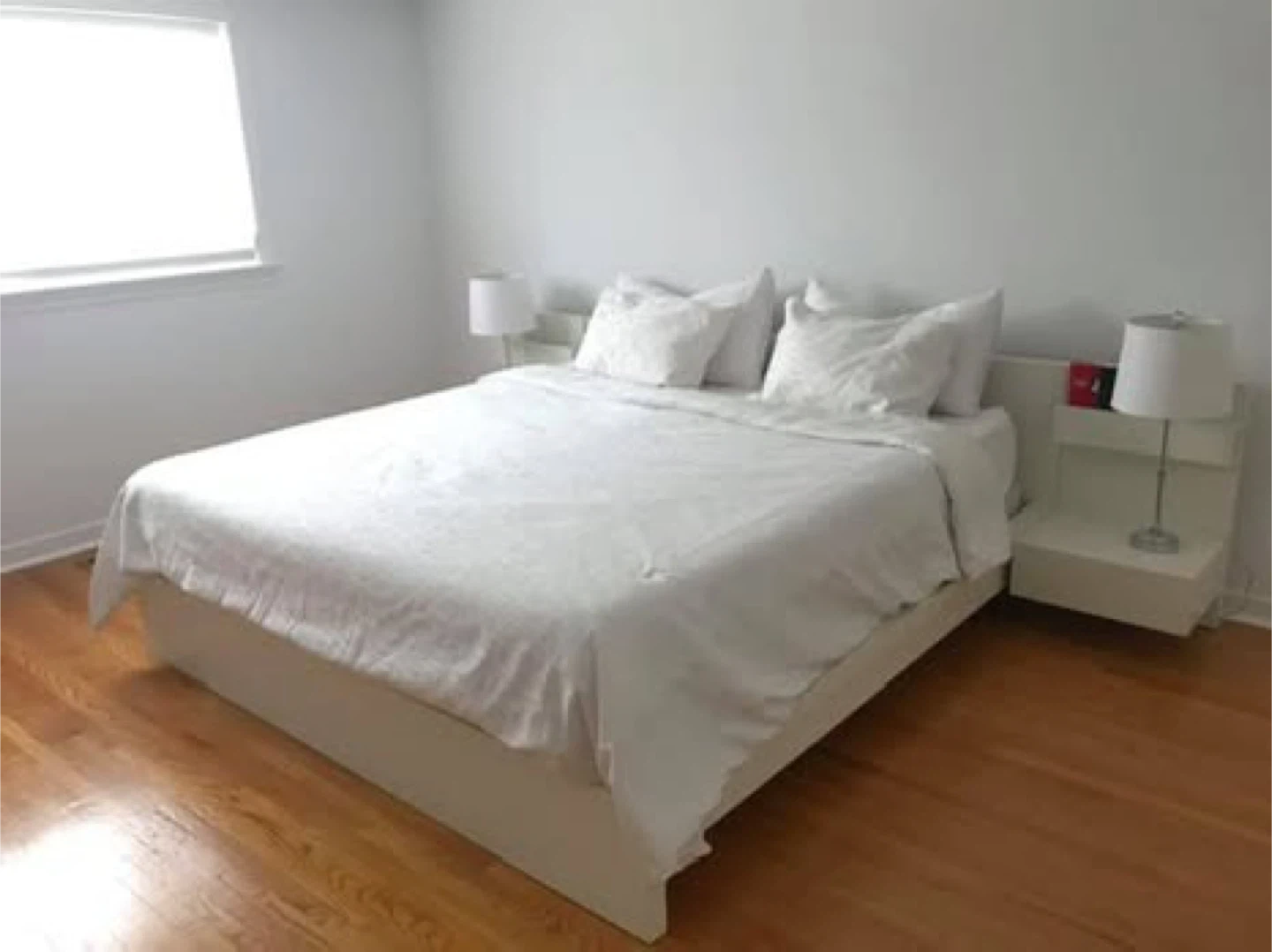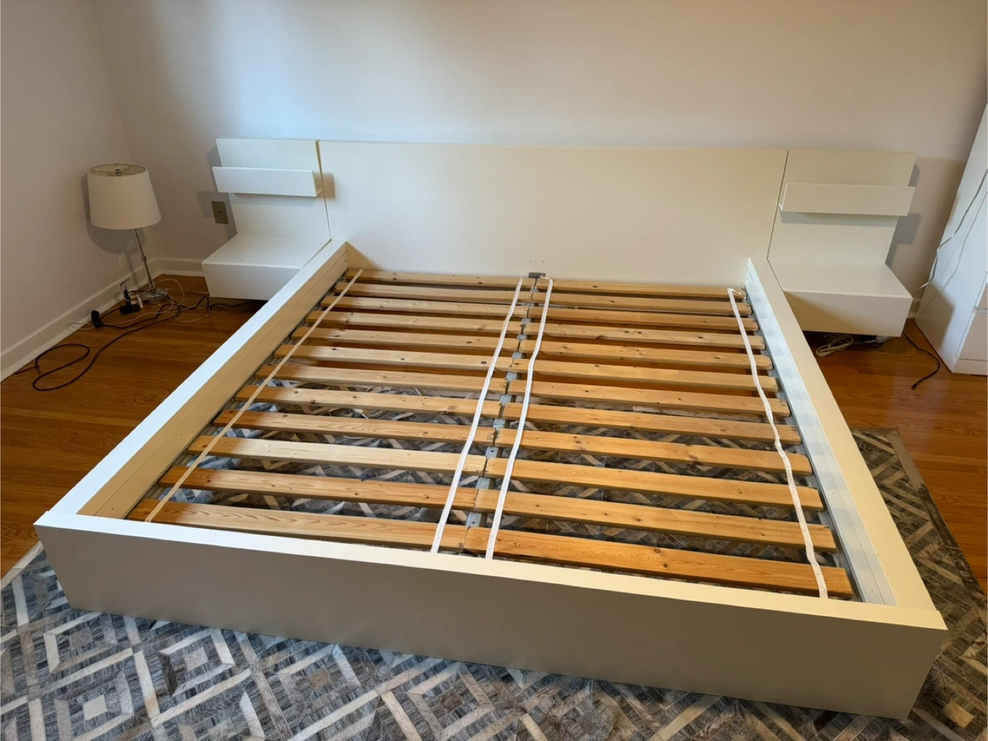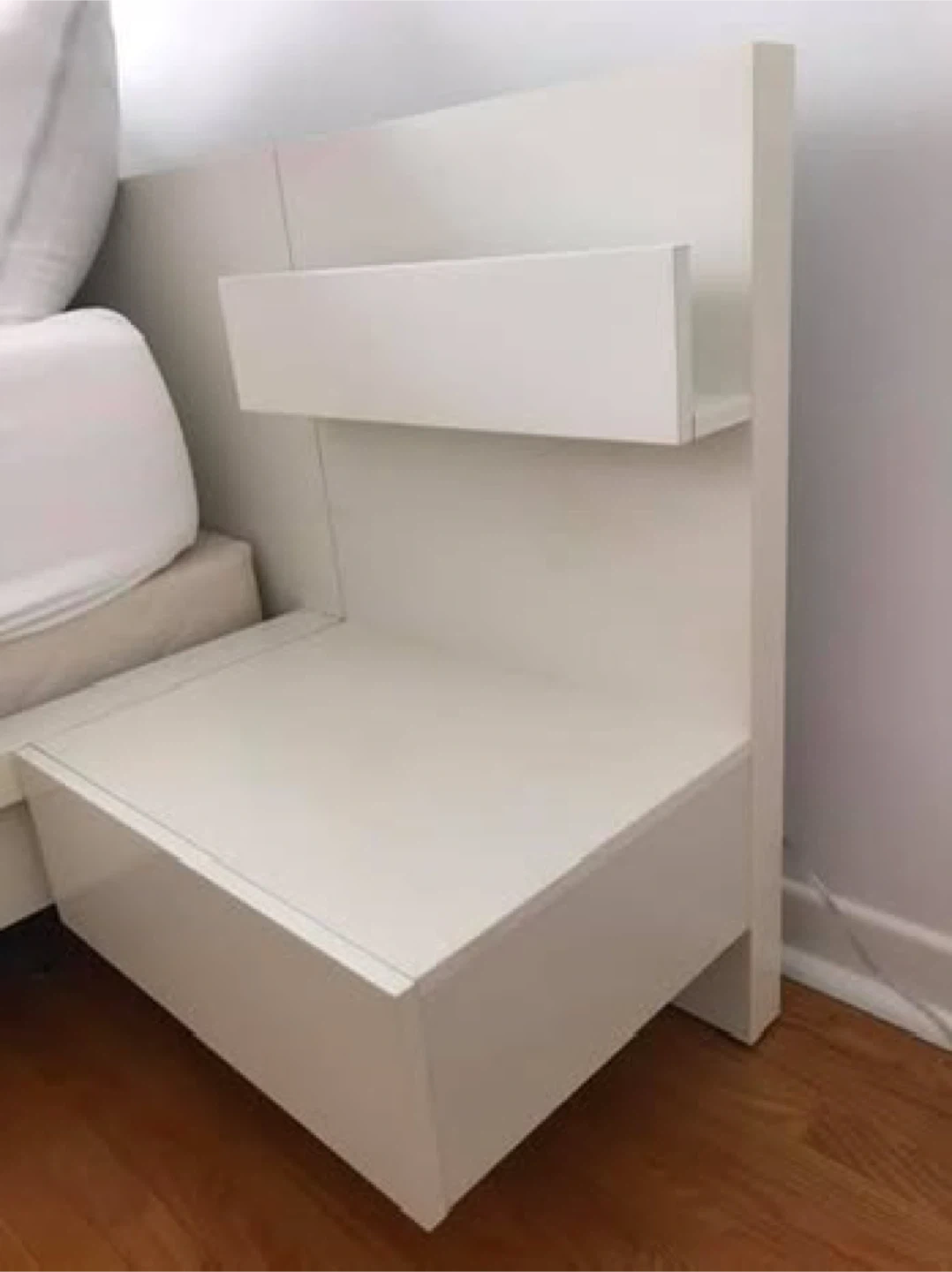 Nightstands are: 19.75” wide x 16.5” deep (each)