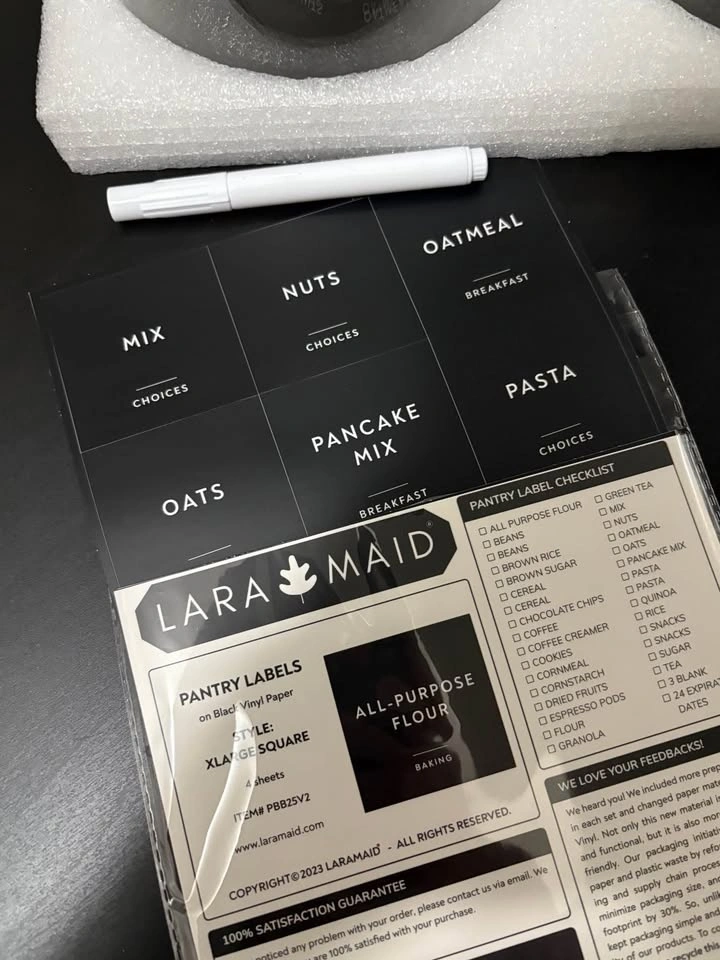 Comes with black pantry labels and a white pen