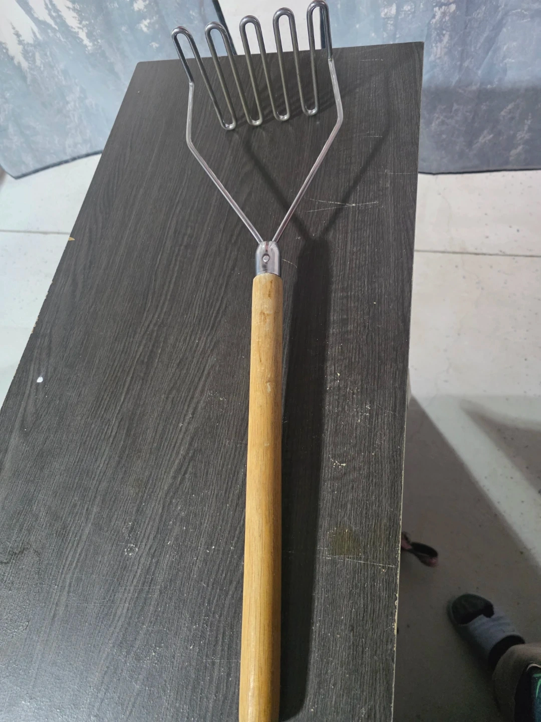 Jumbo size Stainless Steel Potato Masher with Wooden Handle