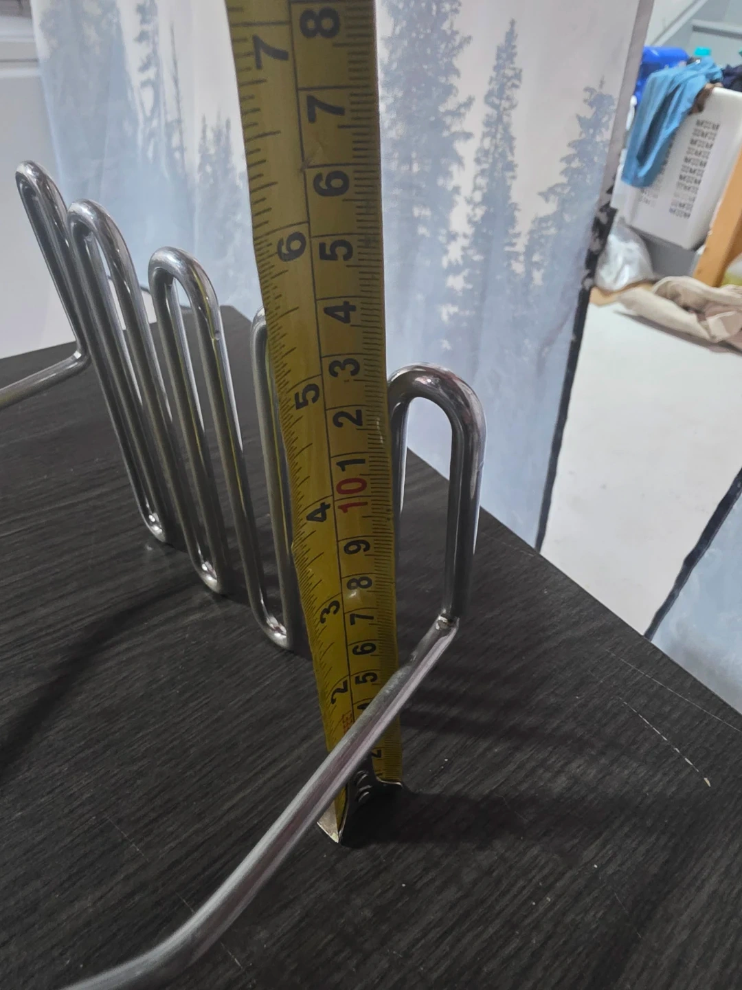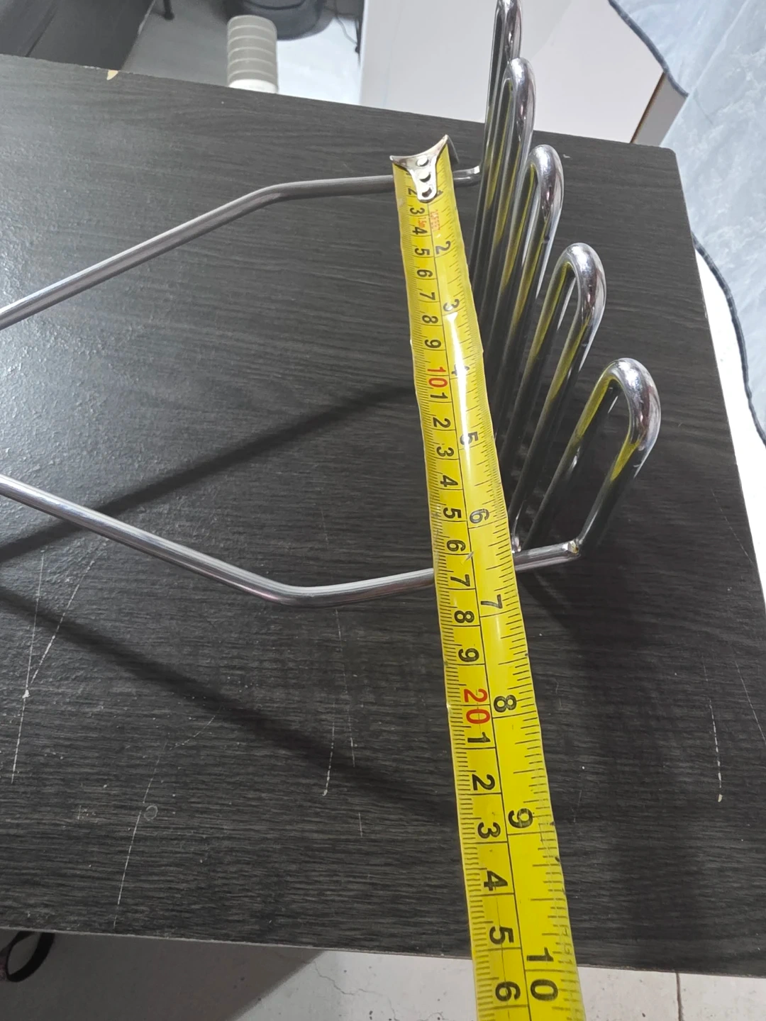 This jumbo size potato masher is made with a sturdy stainless steel mashing head and a comfortable wooden handle. It's designed for efficient mashing of potatoes and other soft foods. The handle measures about 5 inches long, and the mashing head is approximately 4 inches wide.