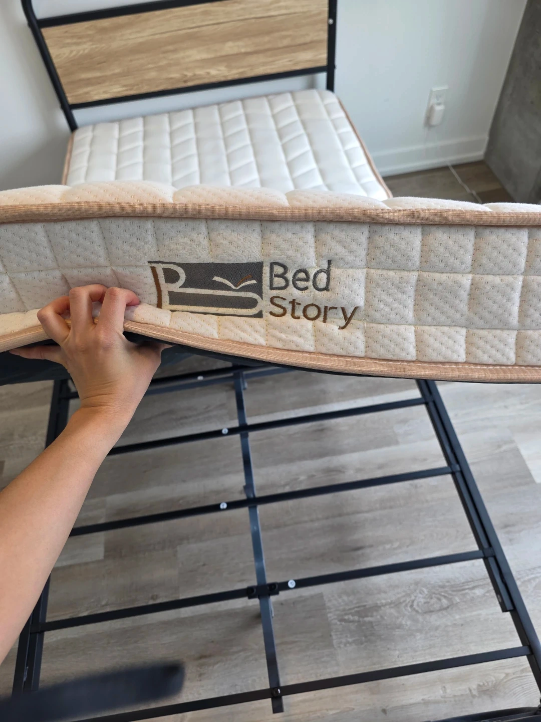 The mattress is a BedStory brand, and both items were purchased from Amazon.