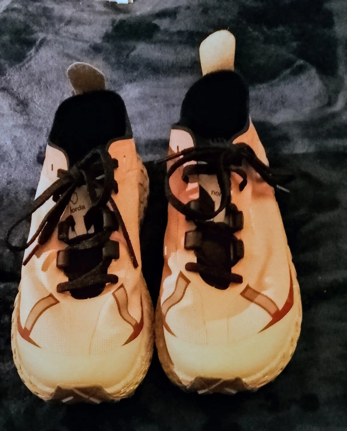 These are nando running shoes with a peach and white colourway. They feature a breathable mesh upper and a durable rubber sole. Perfect for your next run! BRAND NEW NEVER WORN LIMITED EDITION RETAIL. FOR. 371.00