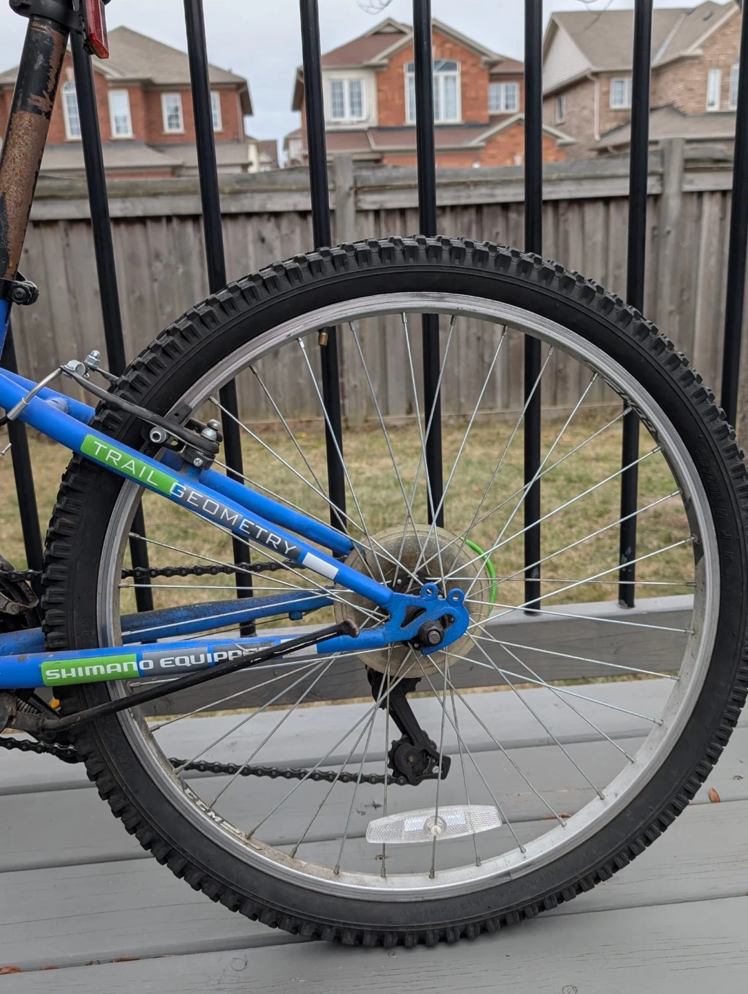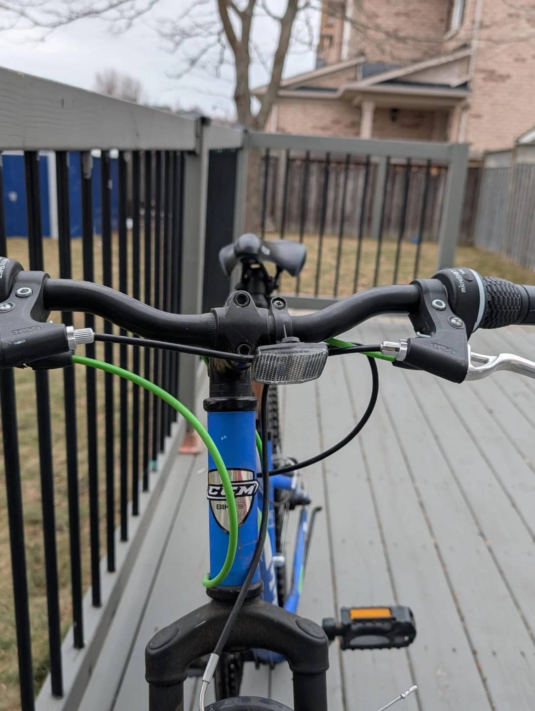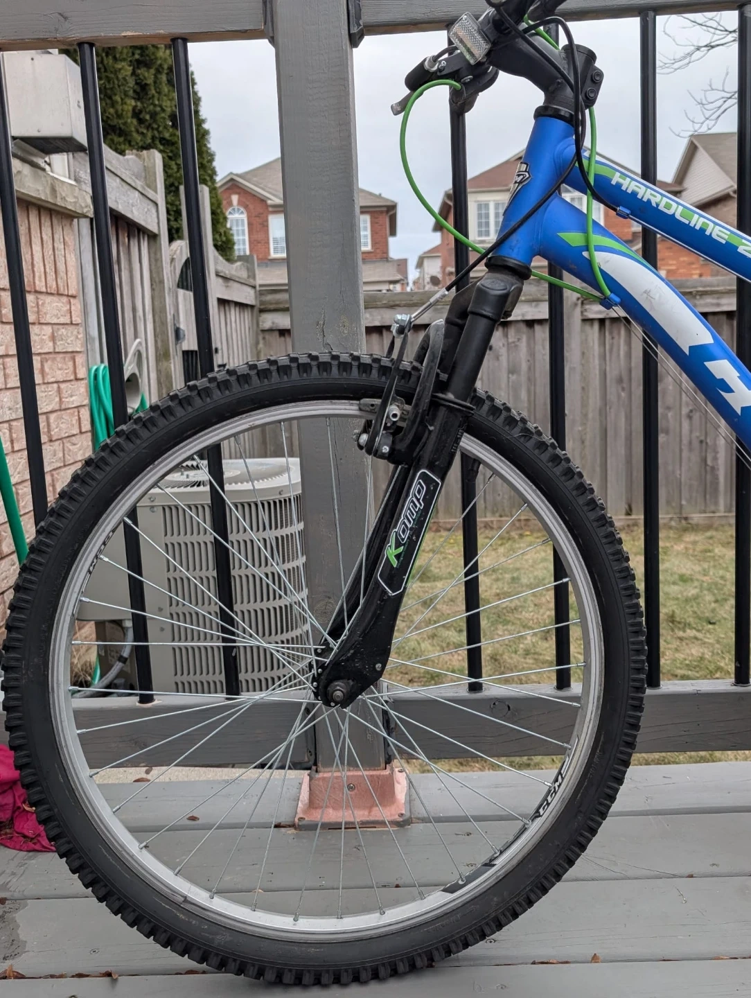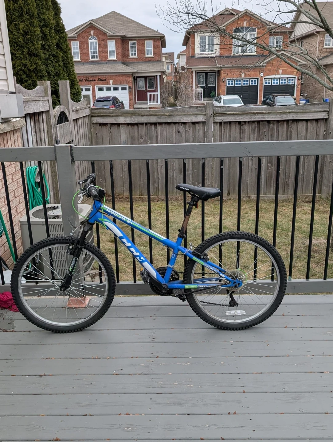 This blue CCM Hardline 24 mountain bike has a durable steel frame and 24-inch wheels. It's equipped with Shimano gearing for smooth rides. Perfect for trails and neighbourhood adventures! The bike stand is slightly broken but is still usable. Originally bought for $500!