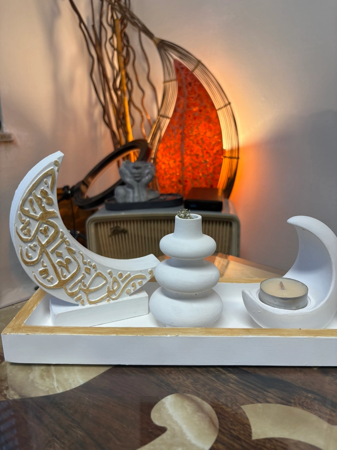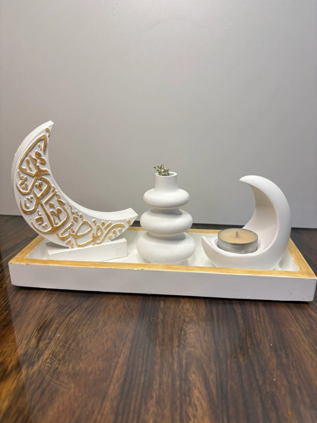 Handmade Ramadan Crescent Moon Tray | Candle Holder & Vase
