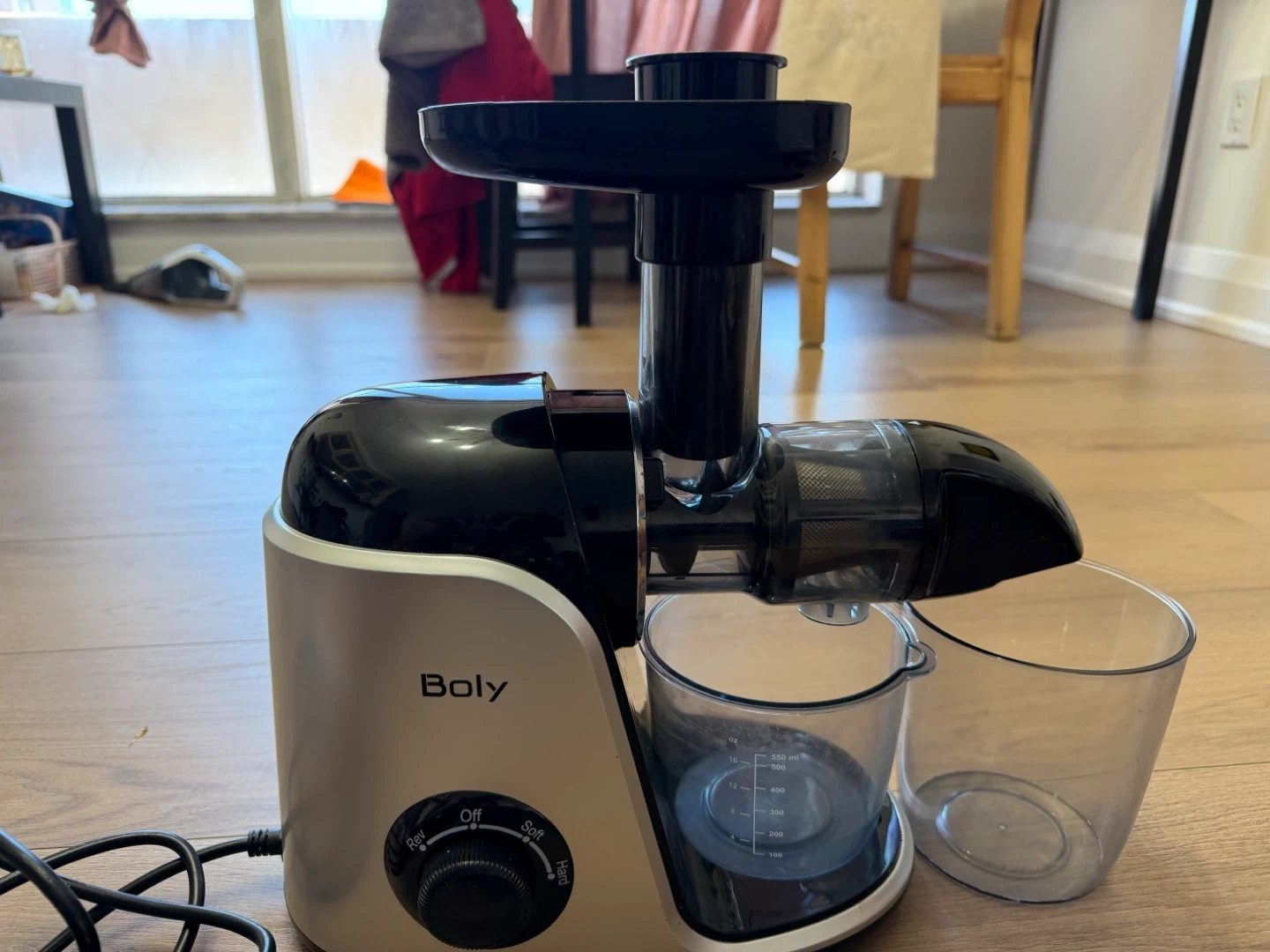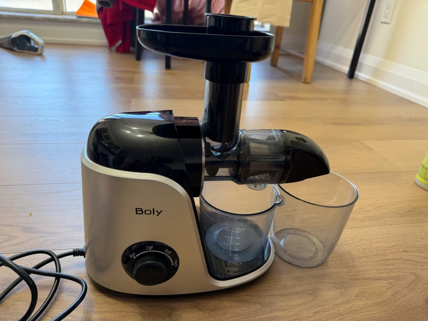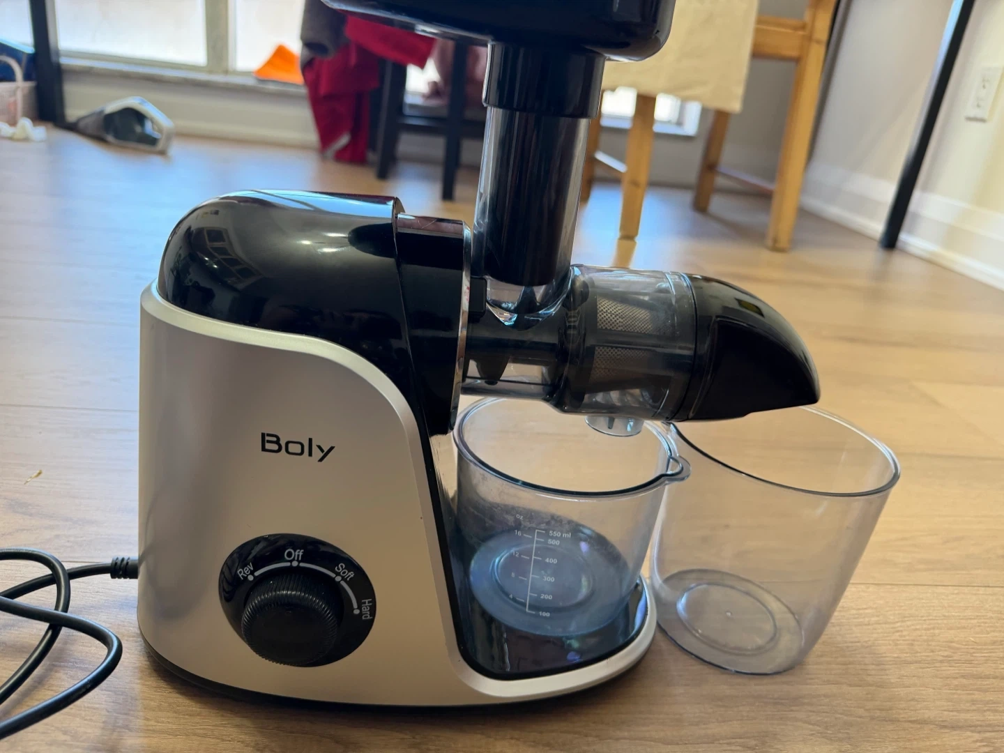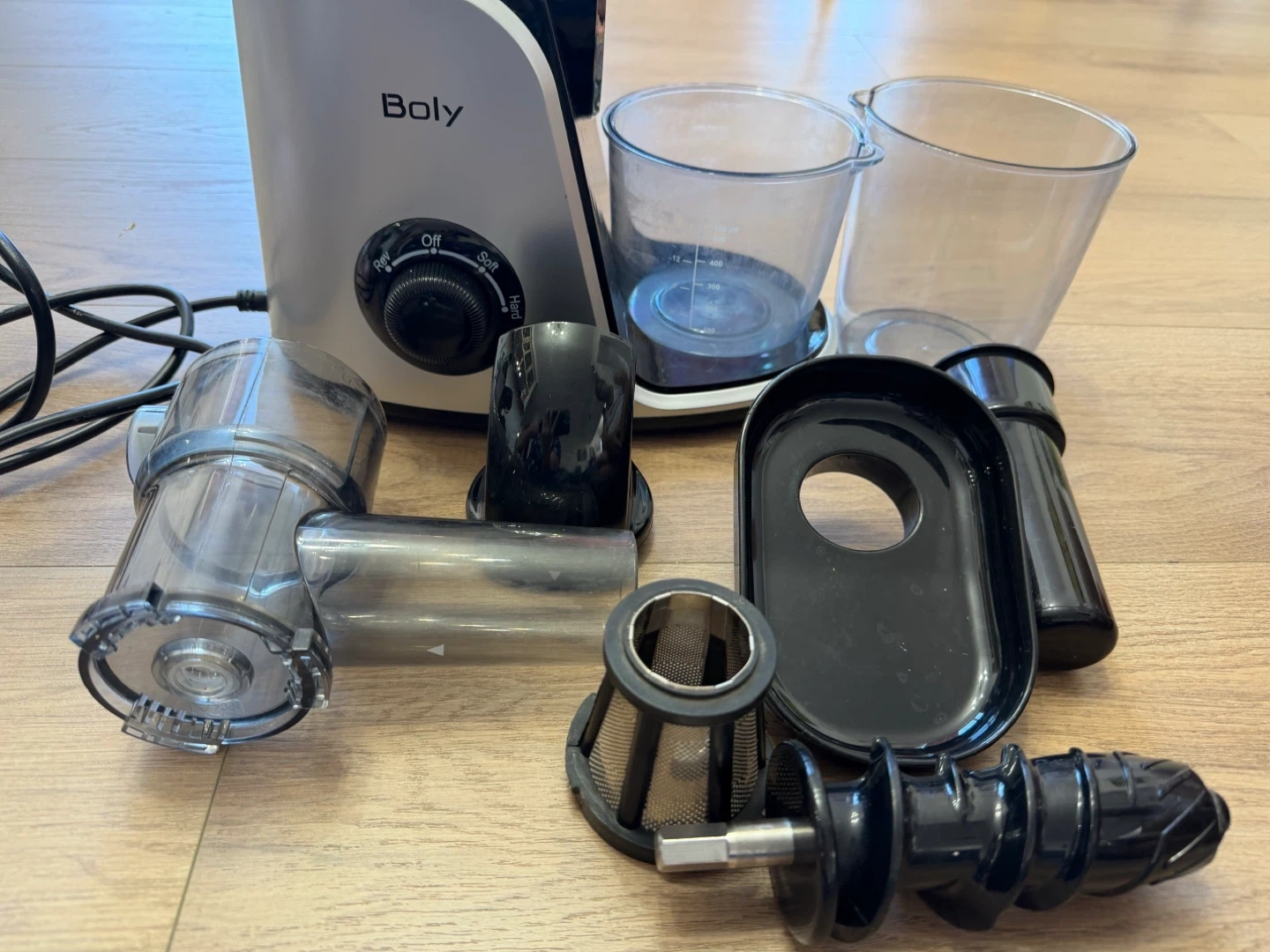 This Boly slow juicer is in good condition. It comes with multiple attachments for juicing different types of produce. Easy to assemble and clean!