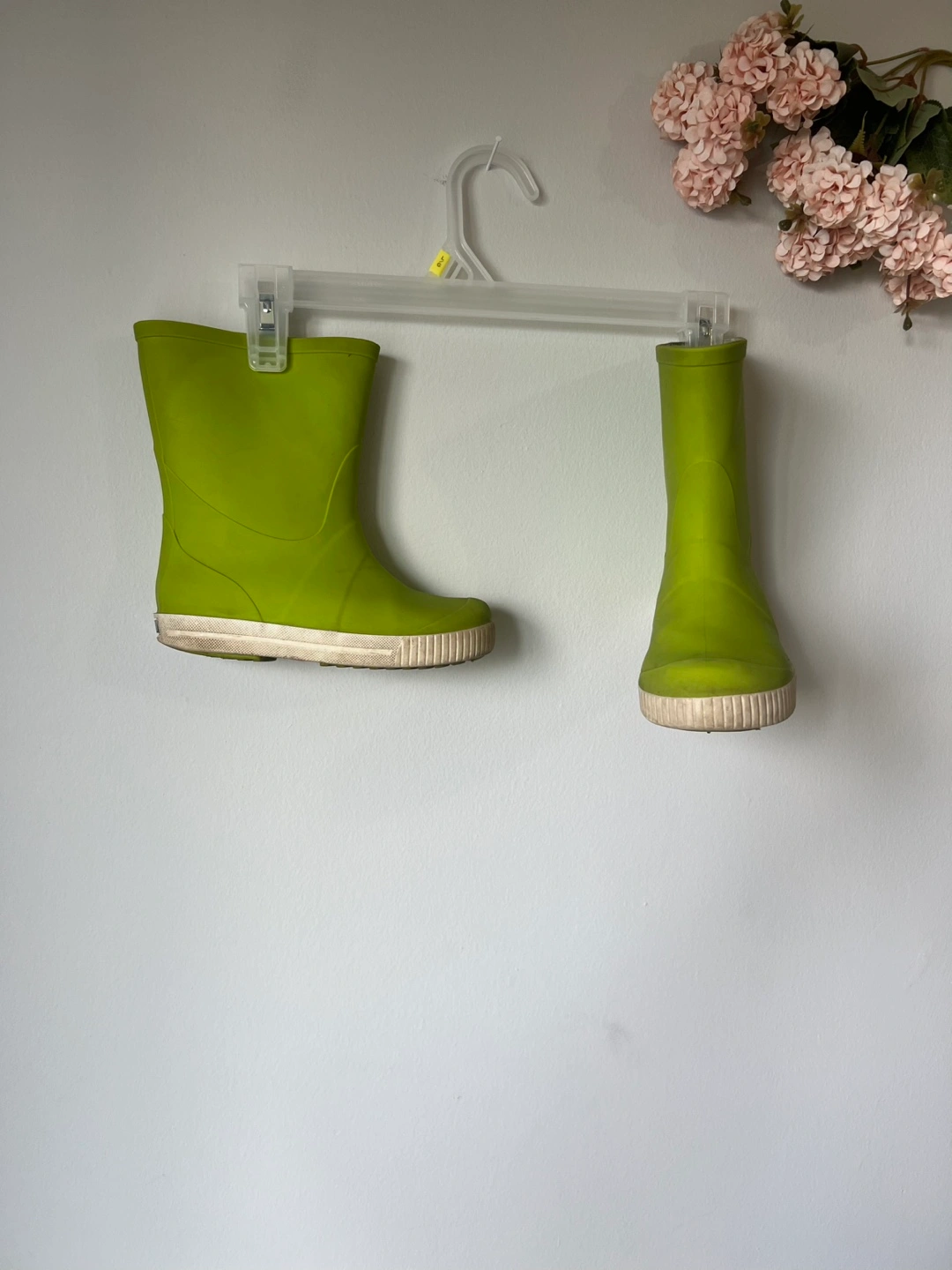 Selling a used but good pair of GO Kids rain boots in a vibrant green color. They are size EU 30 (US/Canada size 12 or 12.5 )