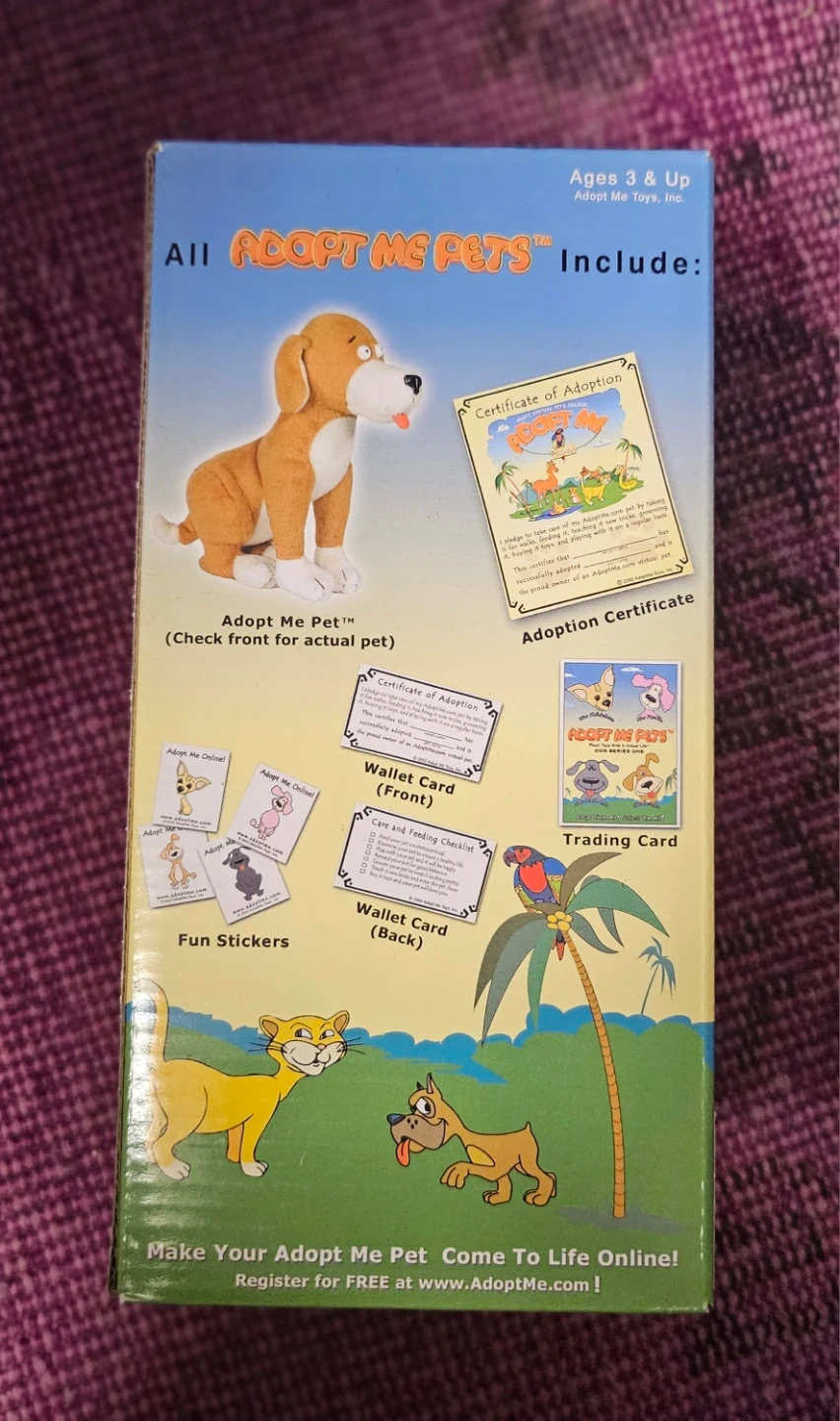 This Adopt Me Pets plush snake is suitable for ages 3 and up. It includes a certificate of adoption, wallet card, and fun stickers. Play with your virtual pet online at AdoptMe.com!