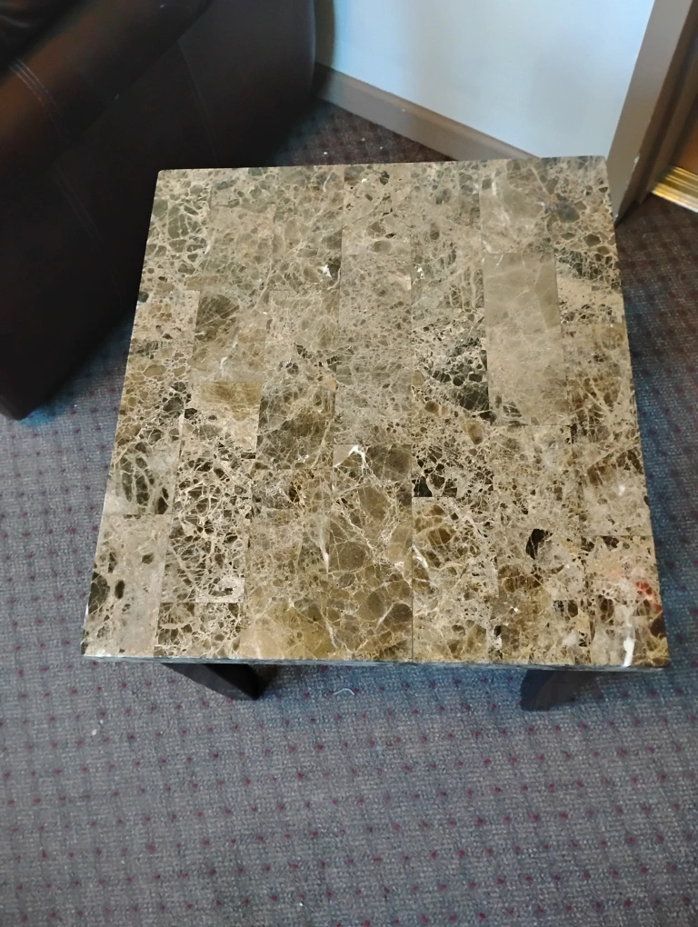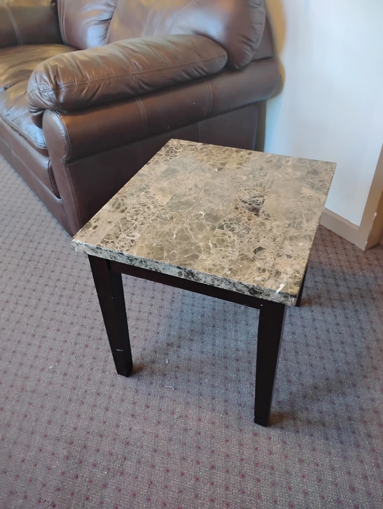 Selling a side table with a beautiful marble top! It's in great condition and would look lovely in any living room or bedroom. Richly enhances any space in your home!