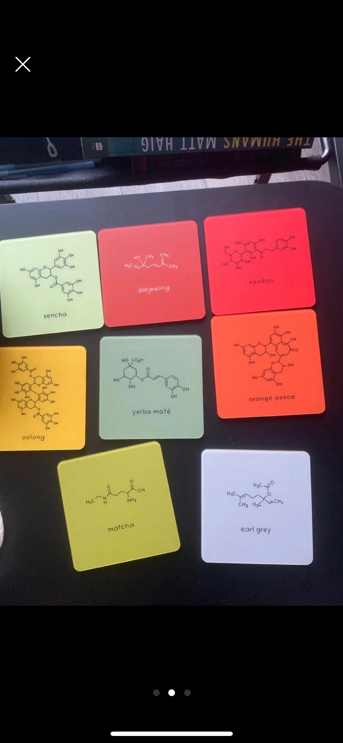 Cute little chemistry fact on the back for each type of tea, and its chemical structure!