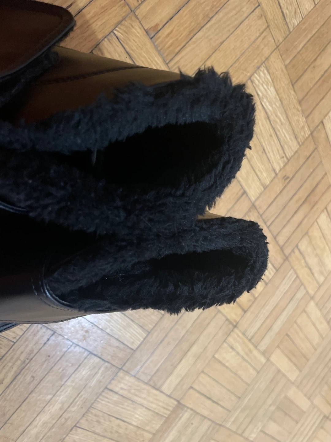 Black Fur Lined Boots with Velcro Straps