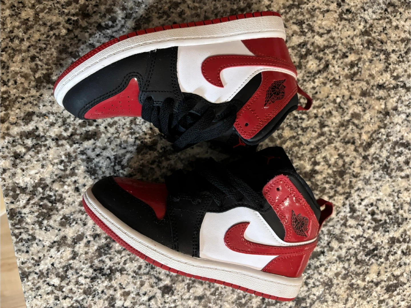These kids' Air Jordan 1 High OG shoes feature the classic "Bred Toe" colourway. They're made with a mix of leather and synthetic materials. Perfect for little sneakerheads! Size13 c