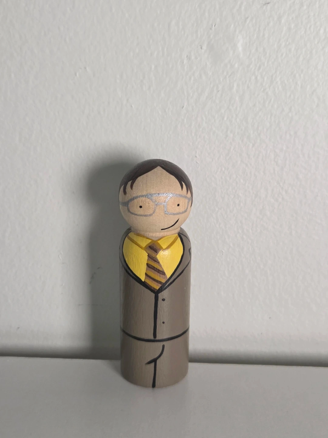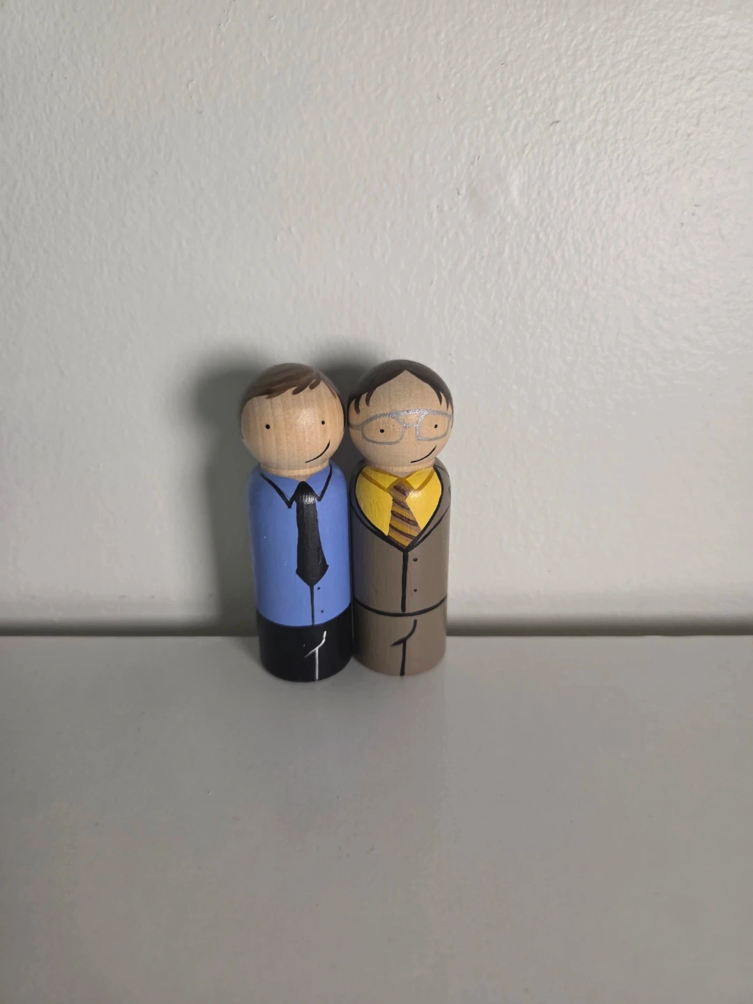 These are hand-painted peg dolls inspired by characters from The Office! They're perfect for any fan of the show and would look great on a desk or shelf