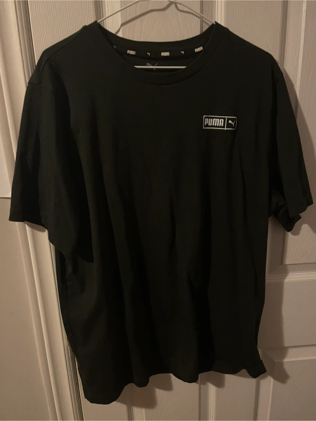 Bundle includes one black Nike Air Max t-shirt, one black Puma t-shirt, and one black t-shirt with a small Chainsaw Man graphic. All shirts are size medium. Great for everyday wear!