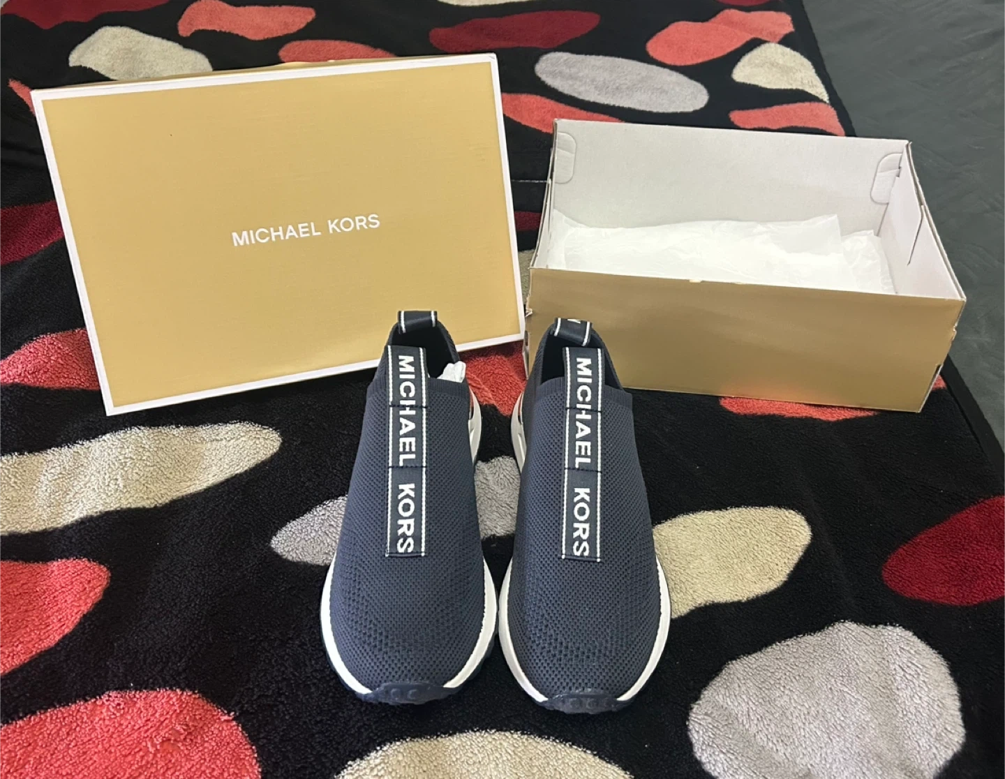 Selling a pair of Michael Kors slip-on sneakers in size 7! They are in excellent condition and come with the original box. Perfect for a casual, comfy look!