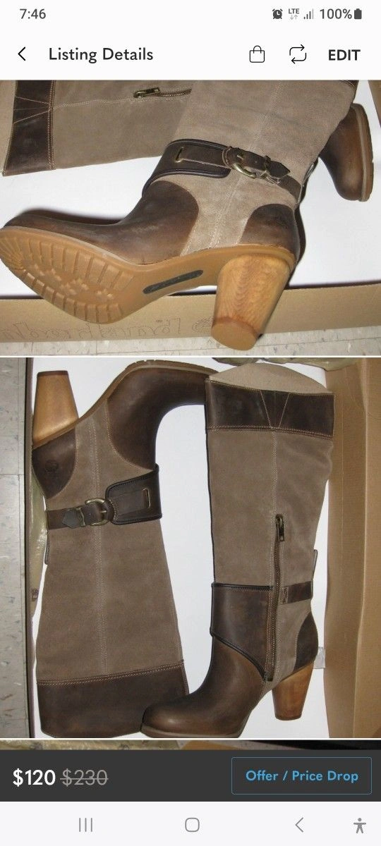 Brand new in box, WATERPROOF Timberland boots in brown. Fits women's size 9 and 8.5. High heel height. - RAIN SALE: MEET THIS WEDNESDAY NEAR LEFRAK AND PAY ABOVE PRICE IN EXACT CASH! NO low-ballers.