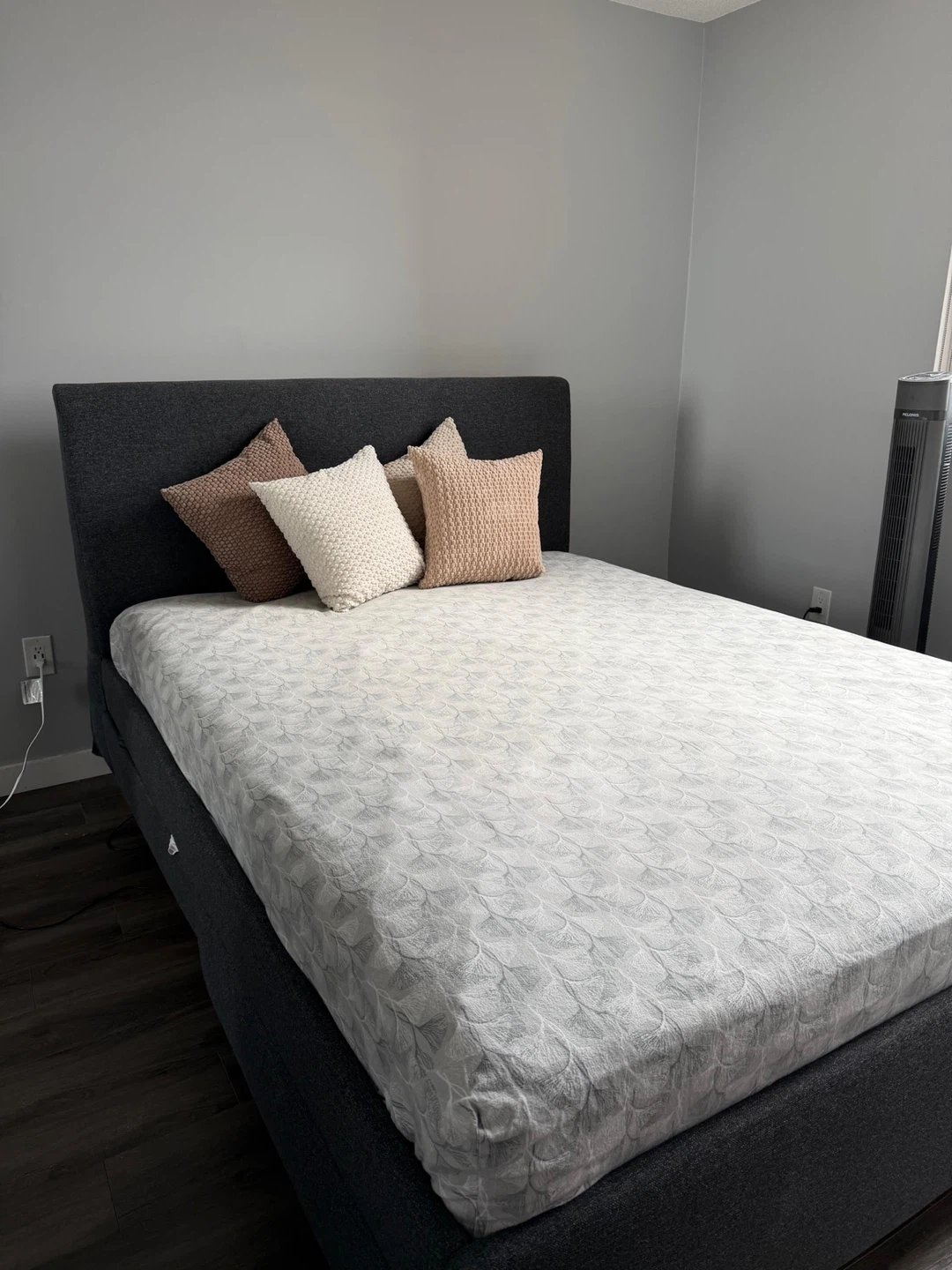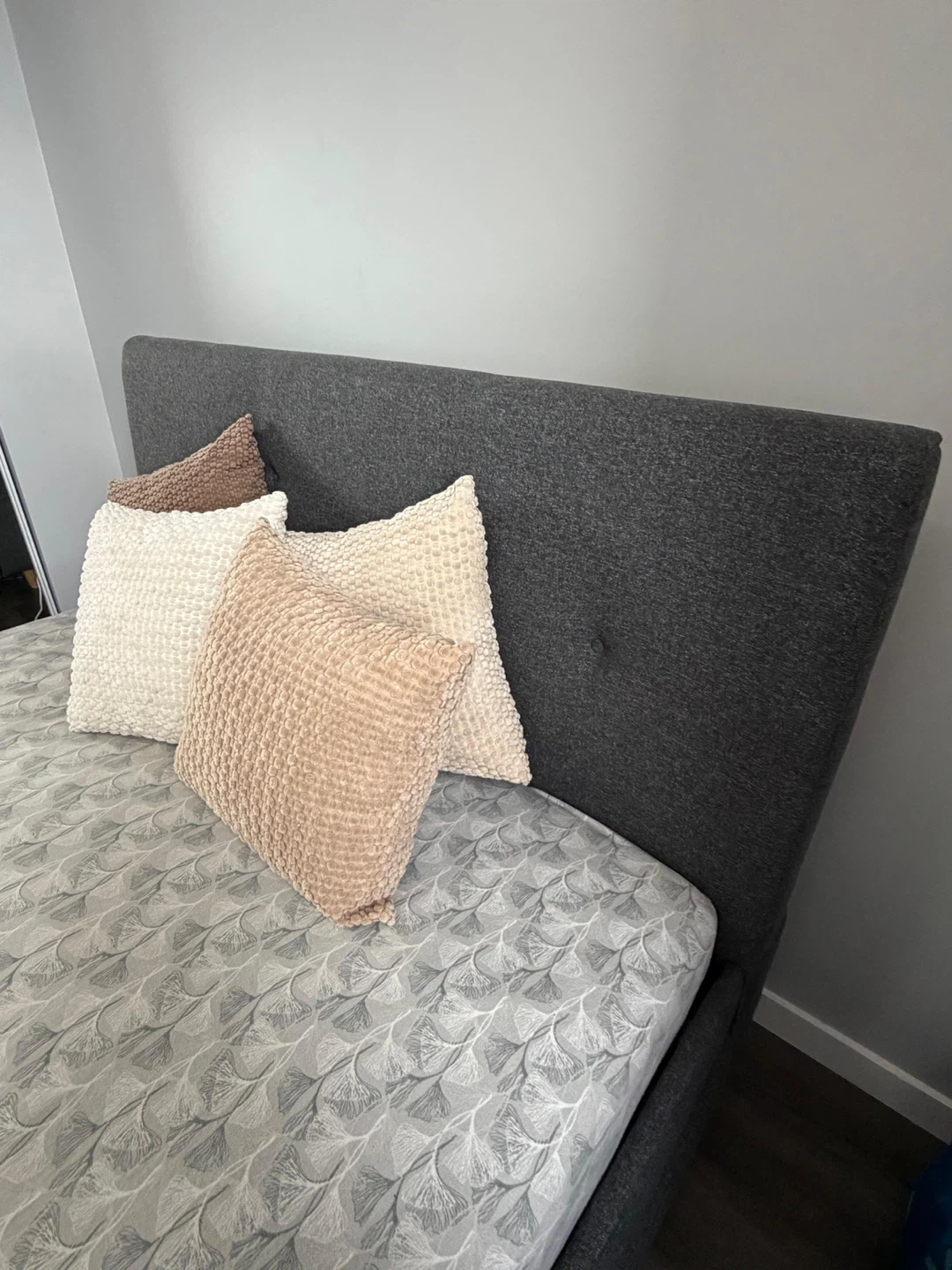 Selling a queen size bed frame in great condition! The bed frame is a stylish grey colour and would be a great addition to any bedroom. It's very sturdy and has been well taken care of. Ready for a new home!