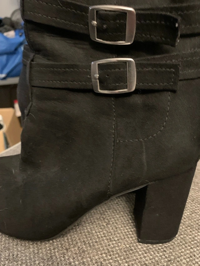Step out in style with these Christian Siriano for Payless black heeled boots, size 7, featuring chic buckle accents. These boots have been previously enjoyed and show some signs of wear, but they're ready for new adventures! I'm clearing out my closet and hoping to find them a new home. If the ad is still up, then yes, they are still available! Cash accepted.