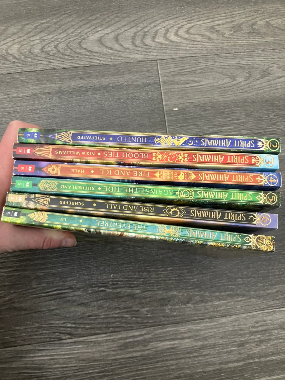Collection of the Spirit Animals book series, including books 2, 3, 4, 5, and 6. These New York Times bestselling books feature young protagonists and magical animal companions. They're great for young readers who enjoy fantasy adventures!
