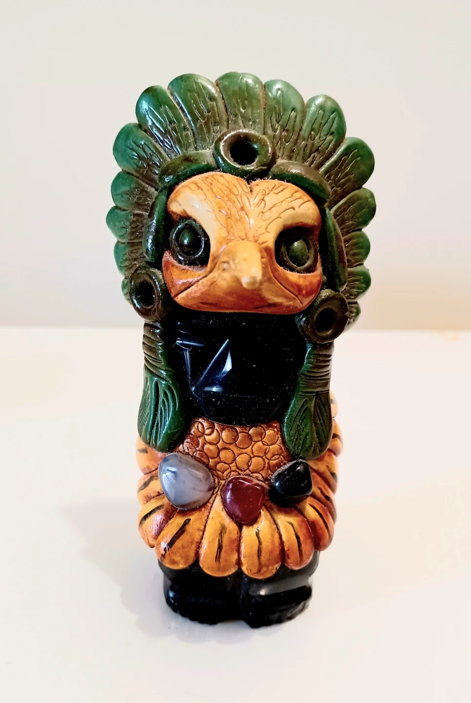 Vintage, Hand carved Onyx Aztec Eagle warrior sculpture, from Mexico, showcasing Intricate Details and Craftsmanship.