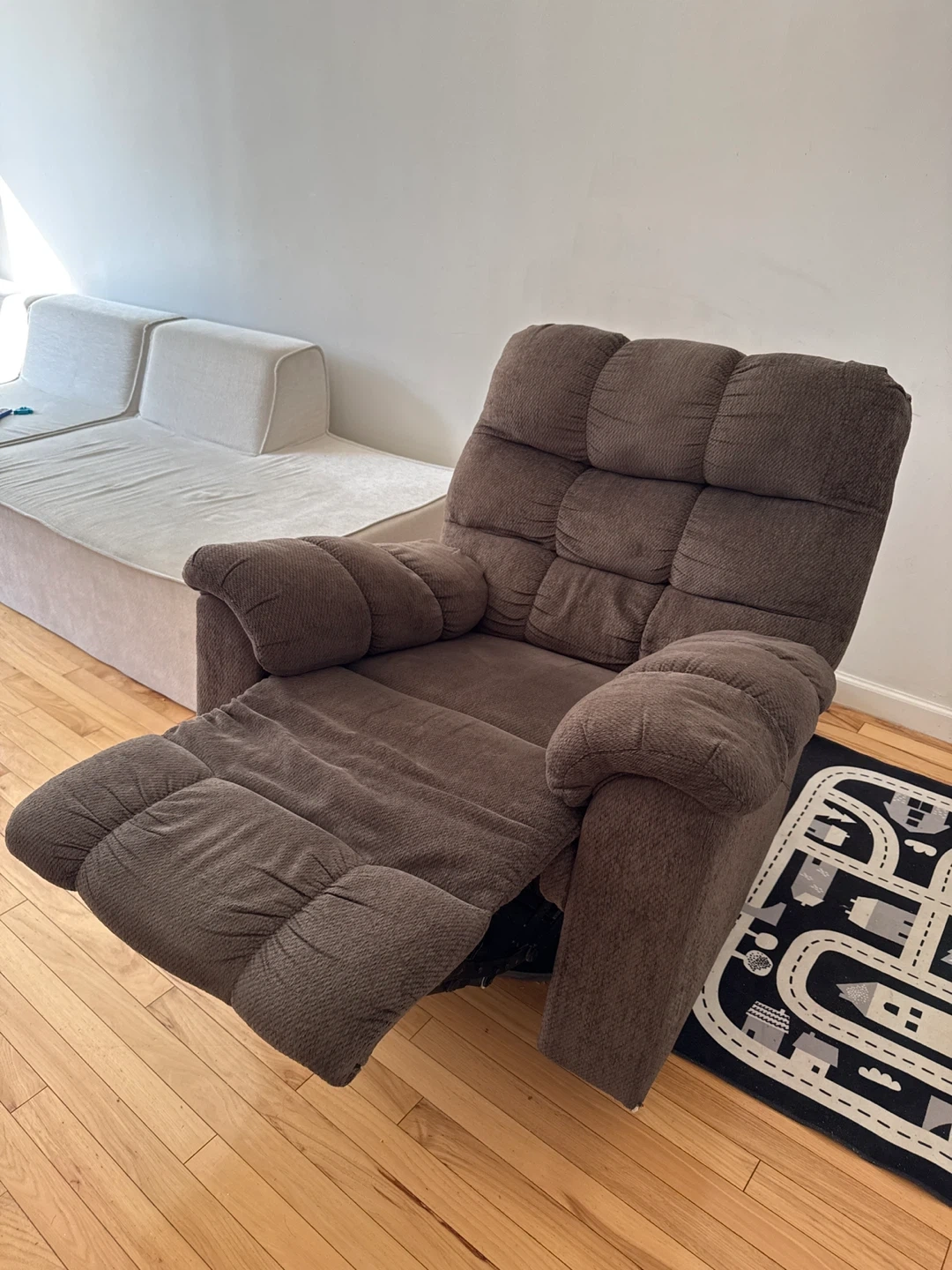 Buy & SellBrown Fabric Recliner Chair π₯Brown Fabric Recliner Chair π₯FreeSelling a comfy brown recliner chair! It's in good condition and ready for a new home. Perfect for relaxing after a long dayConditionGoodDimensions38x38x38WHERE TO MEETUpper than McDonaldsView MapSELLERverifiedMafeRidgewood872 reviews31 chatsΒ·13 favoritesΒ·593 viewsSEND CHAT TO SELLERHi Mafe! Iβm interested in your listing.Hi Mafe! Iβm interested in your listing.Get the Karrot app to chatSign In to chat