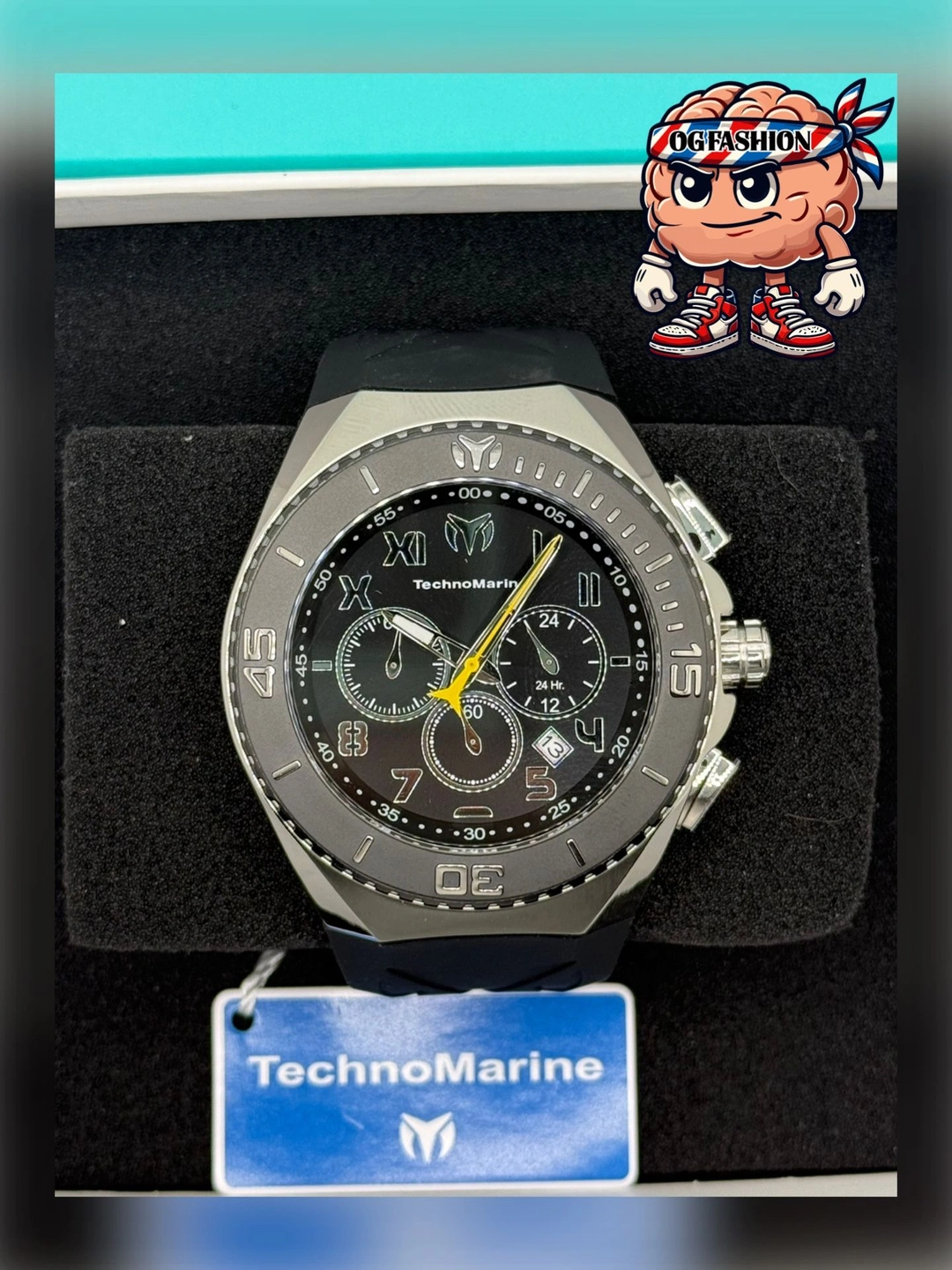TechnoMarine Men’s Chronograph Black Dial Rubber Strap New