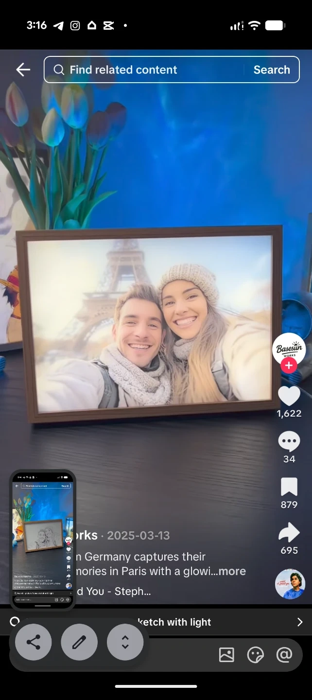 This is a custom sketch picture frame once light turned on the image magically becomes colored image. Please send a message for specifications and customization.