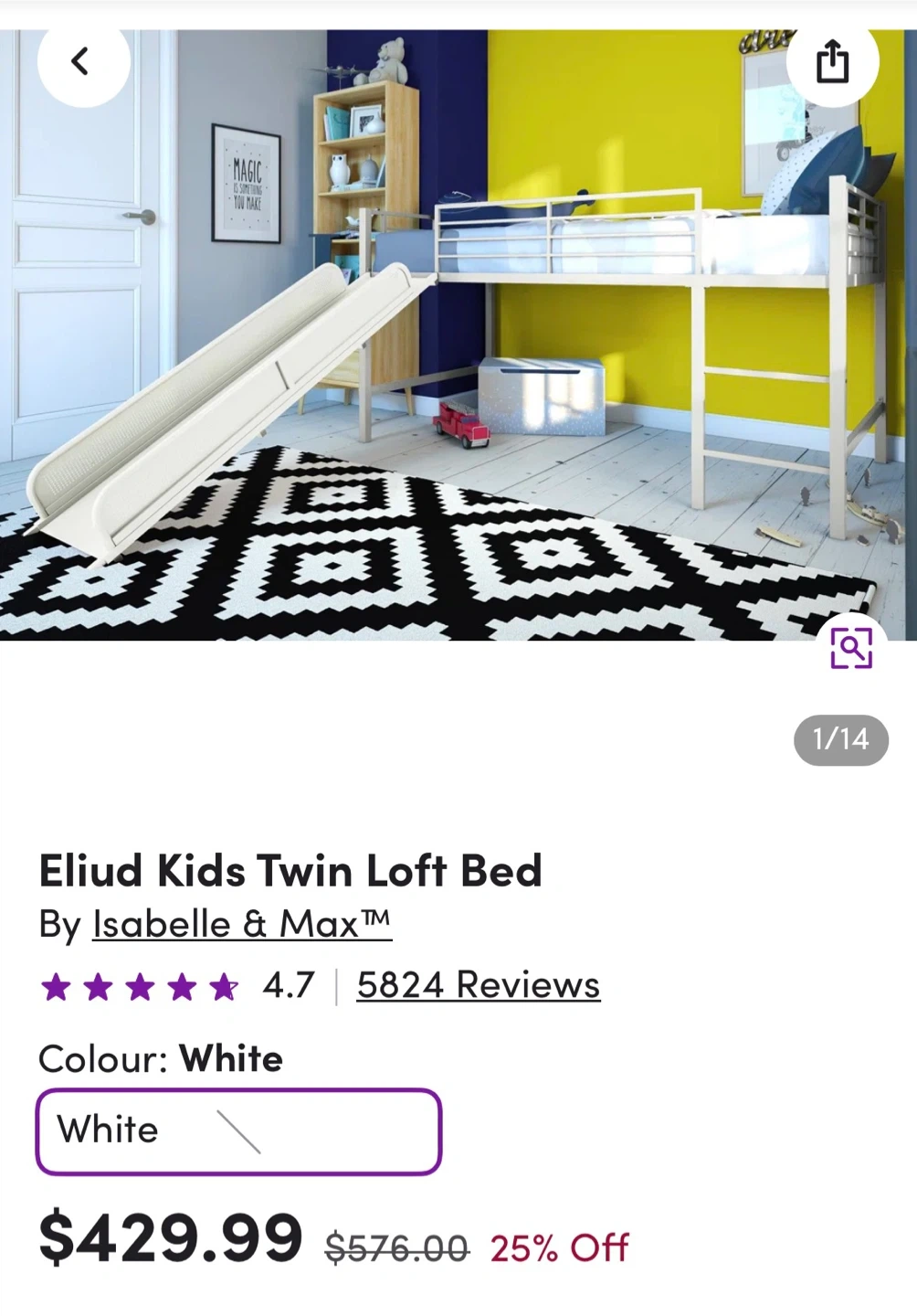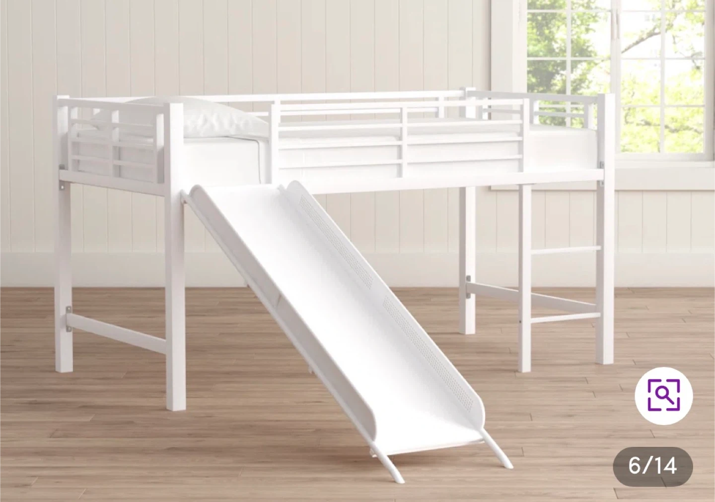 Eliud Twin Loft Bed with Slide – White (Mattress Included)