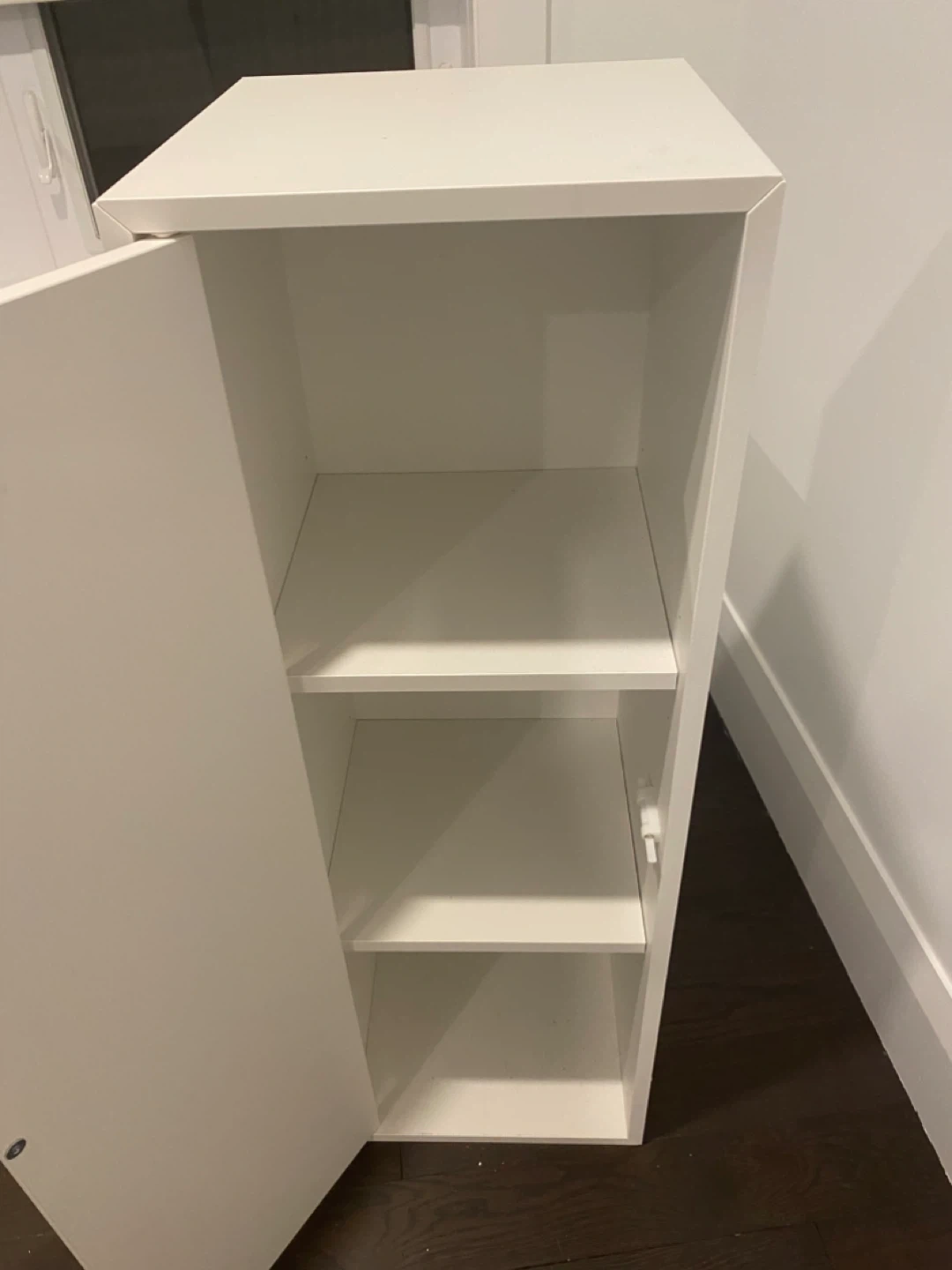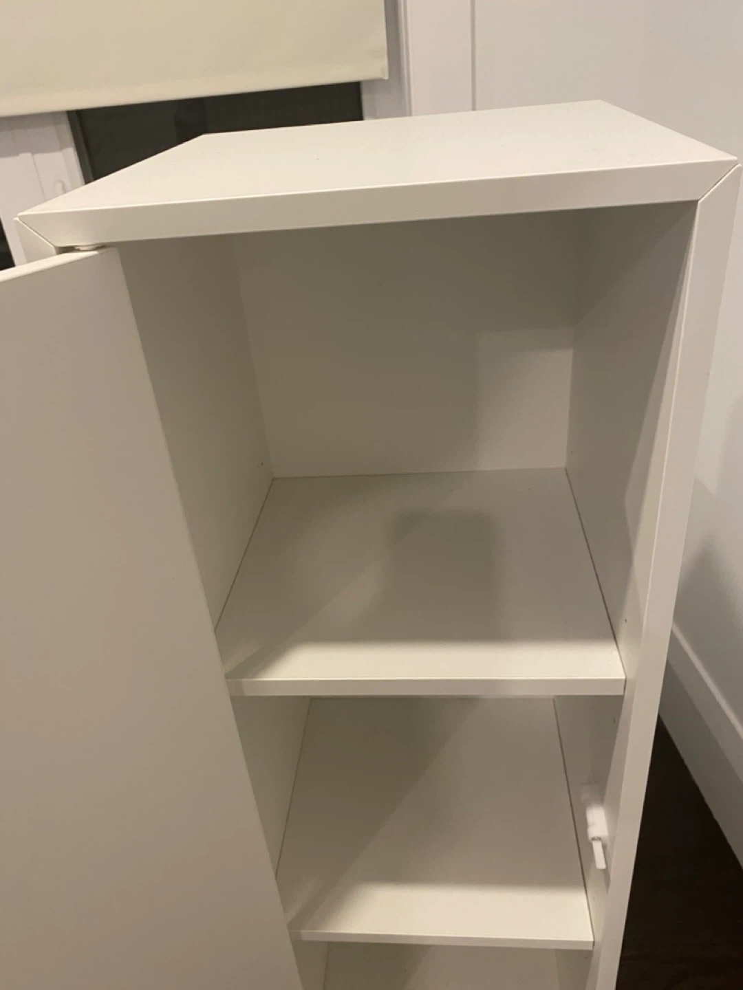 Selling a white cabinet with shelves. It's in good condition and perfect for extra storage! It features adjustable shelves to customize your space and a simple design to match any decor. Goes for over $100