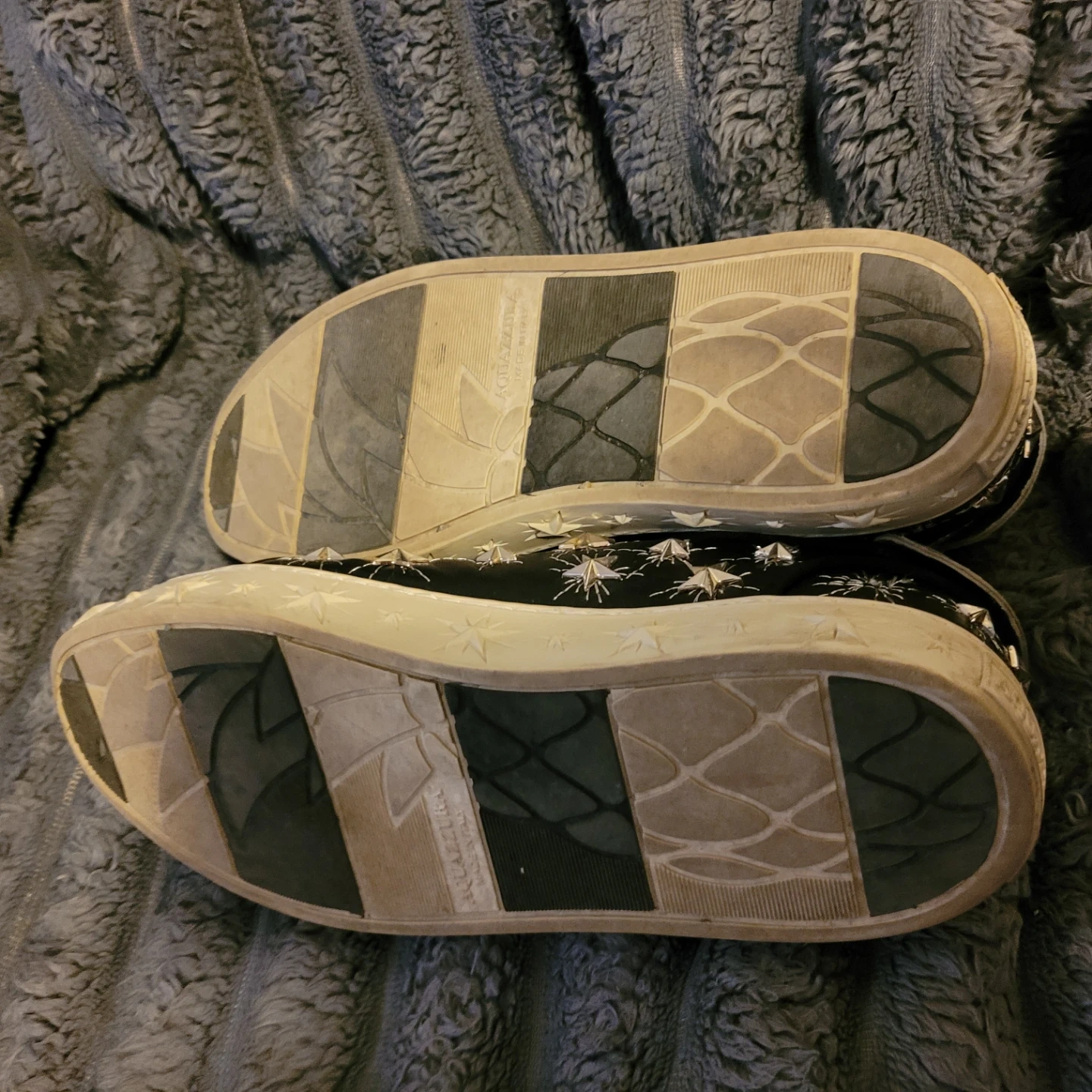 Aquazzura Black Leather Star Studded Sneakers sz7/eu37