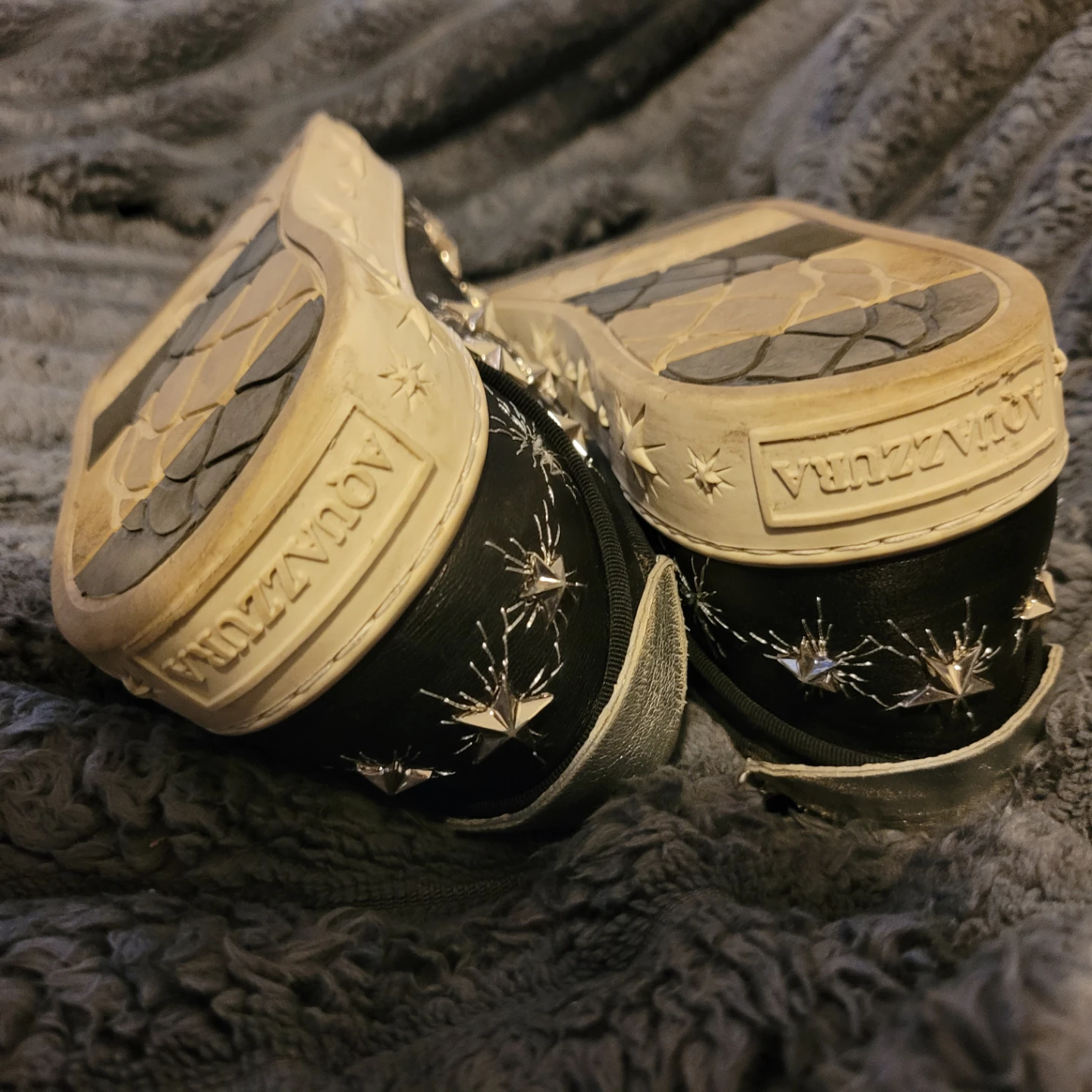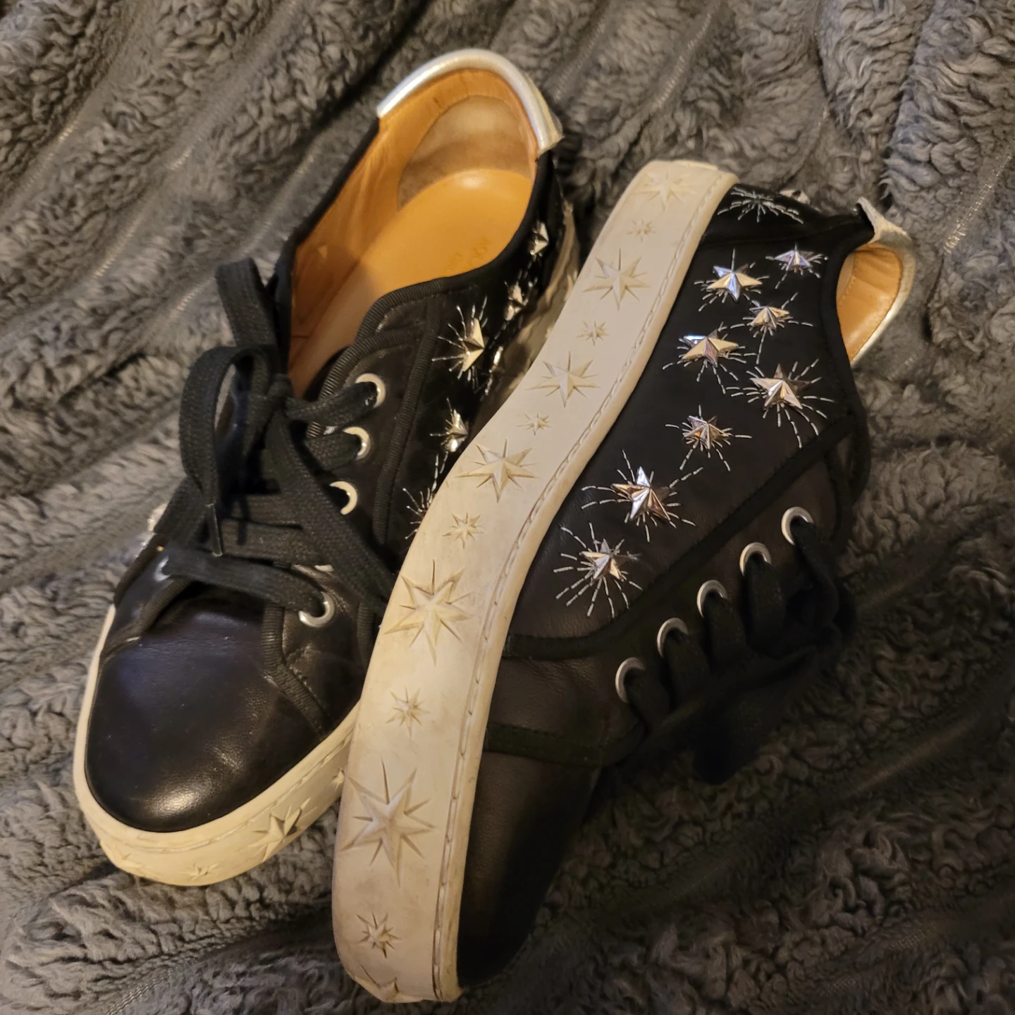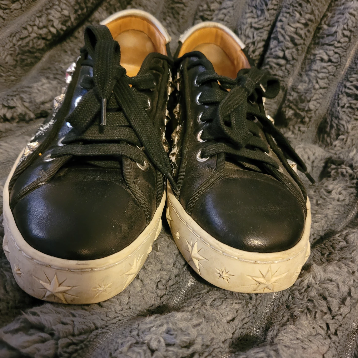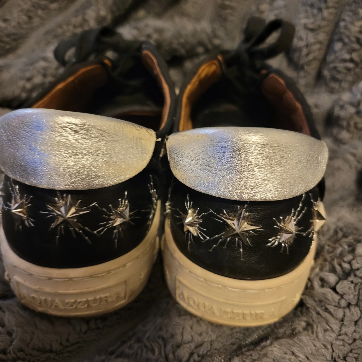 Aquazzura Black Leather Star Studded Sneakers sz7/eu37