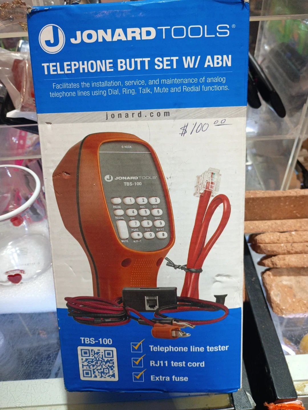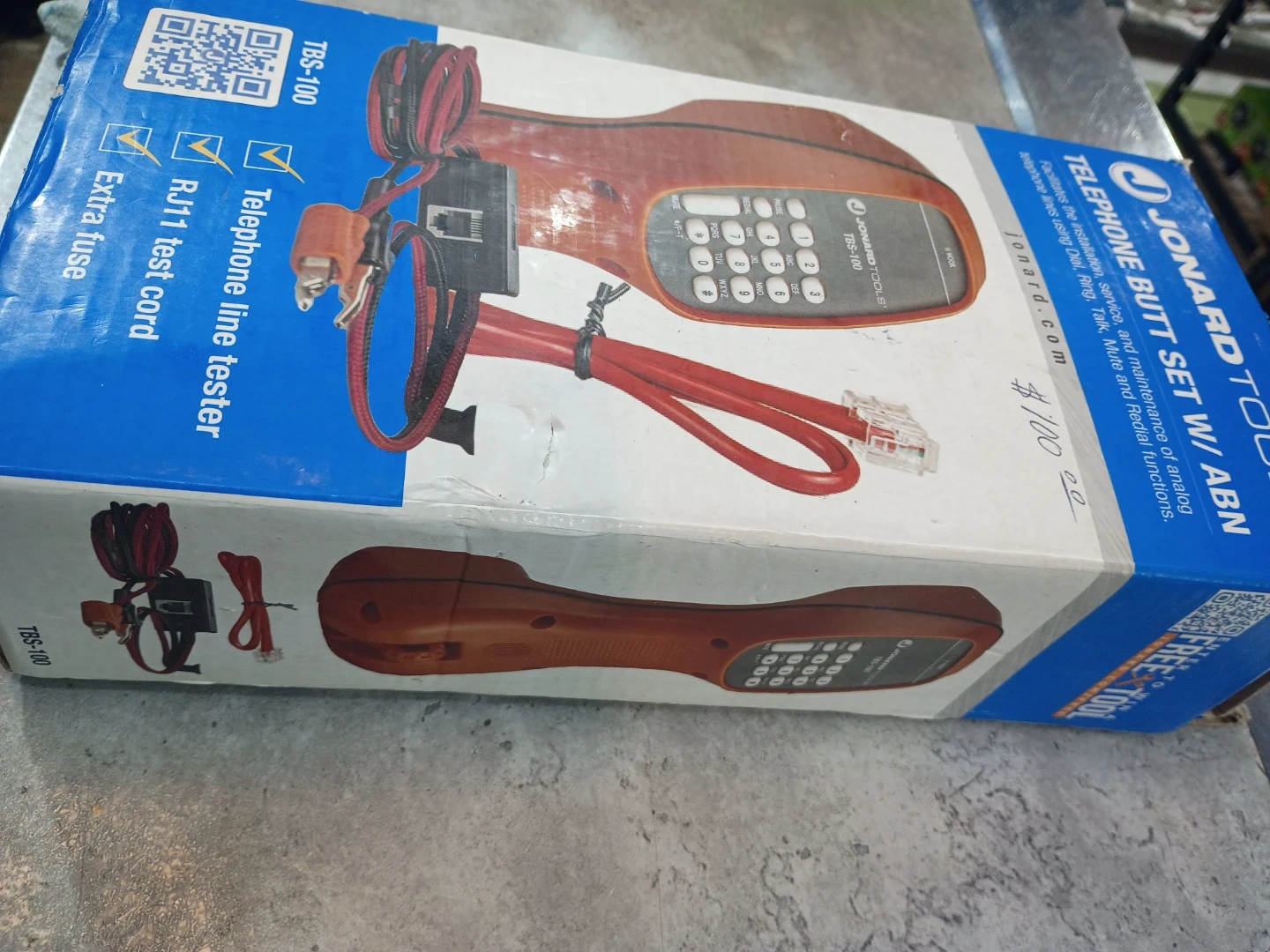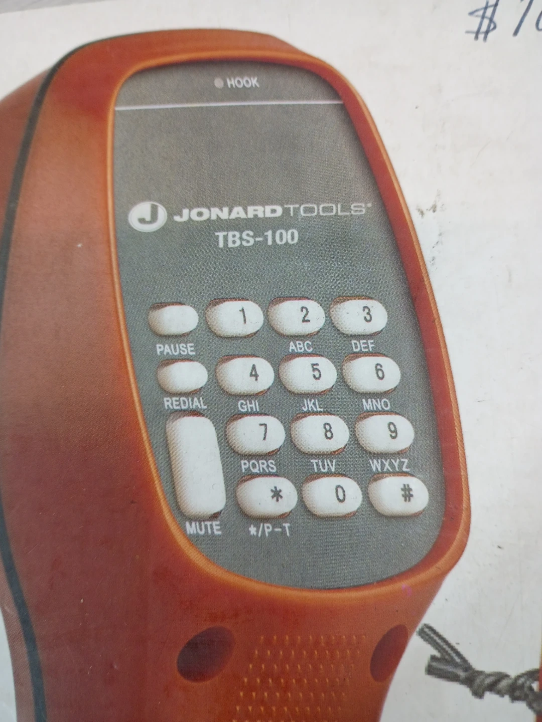 Selling a Jonard Tools TBS-100 Telephone Butt Set w/ ABN. It facilitates the installation, service, and maintenance of analog telephone lines using Dial, Ring, Talk, Mute and Redial functions. It also includes a telephone line tester, RJ11 test cord, and extra fuse. The box is included!