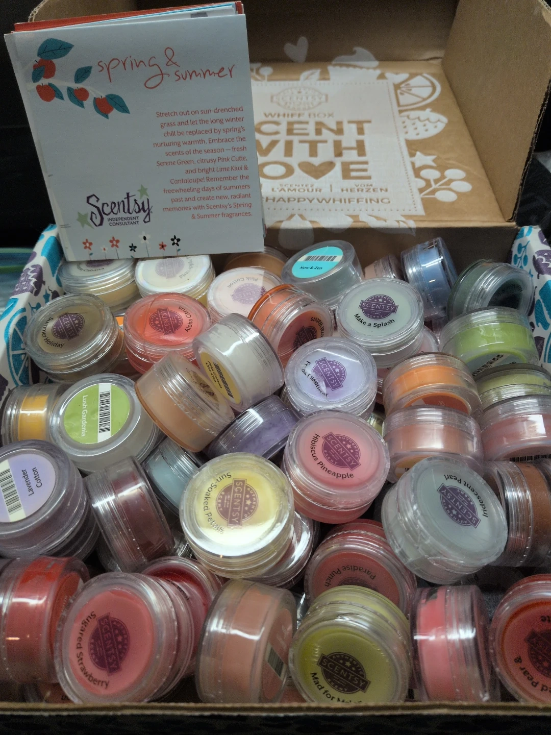 Selling a box full of Scentsy wax tester melts! There's a variety of different scents to choose from, including: