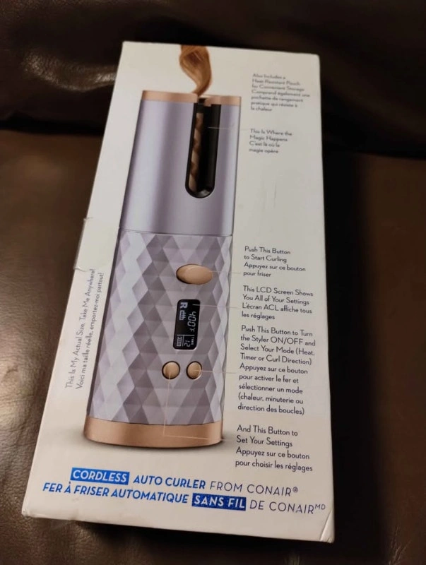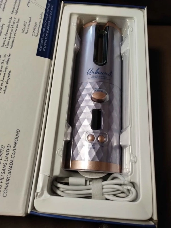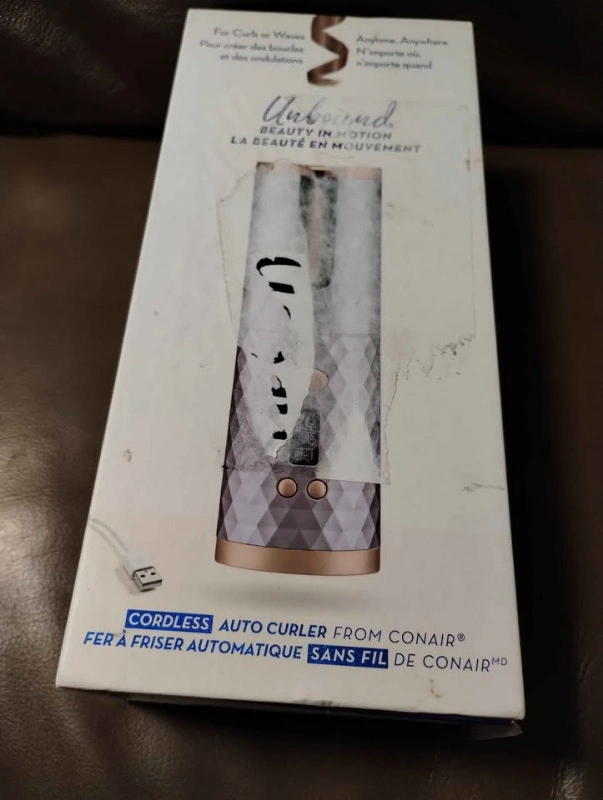 Unbound Cordless Auto Curler From Conair - The First High Performance Cordless, Rechargeable. Open Box New. Create beautiful curls or waves anytime, anywhere with the unbound cordless auto curler from Conair, The creators of curl secret. Easy to use, no skill required replacement for your traditional curling Iron or curling wand. Perfect curls or waves everytime for beauty in motion. 60-Minute cord-free curling run time; rechargeable auto curler requires 4.5-Hour initial charge time. Charging to full capacity after first time use will take less time. VIEW MY OTHER ADS!!!