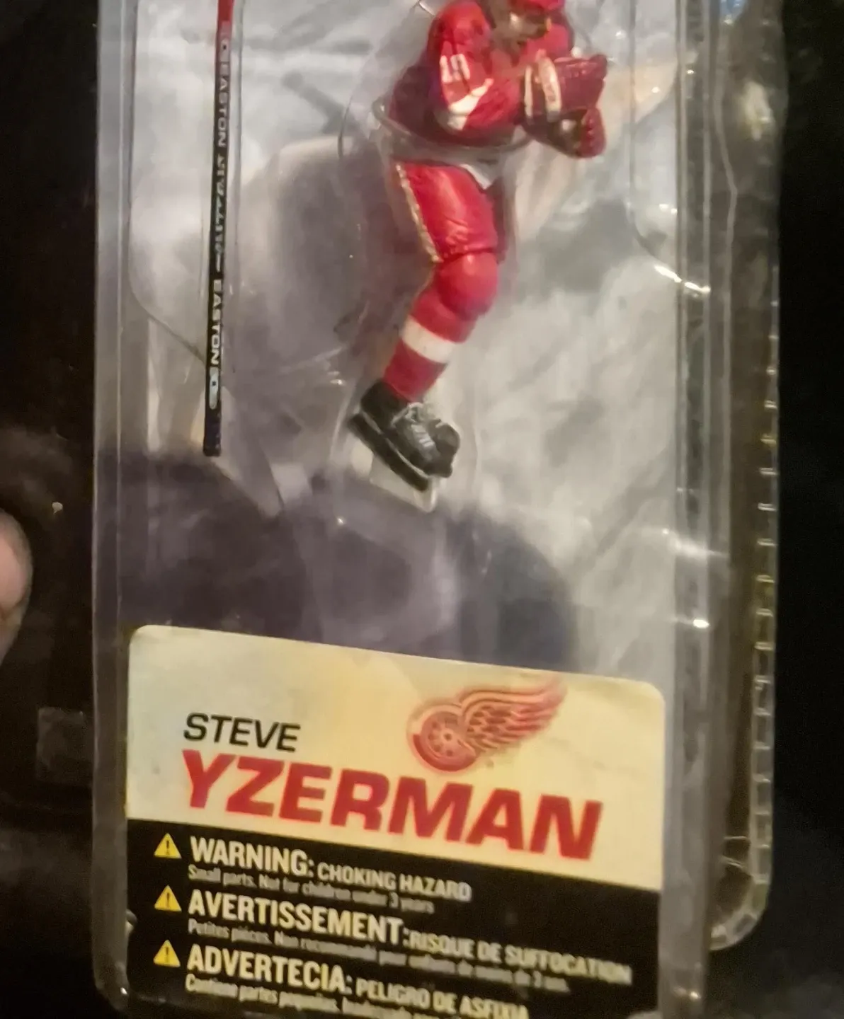 This is a Steve Yzerman hockey figurine. It includes a hockey stick accessory. This item is not recommended for children under 3 years due to small parts.