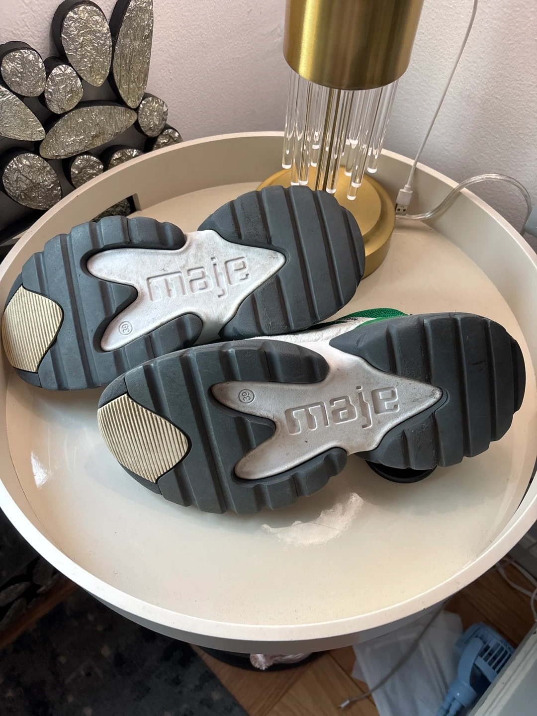 Selling a pair of Maje sneakers in a green and white colorway. The shoes feature the words "Dream Tomorrow" on the laces. They are in great condition!