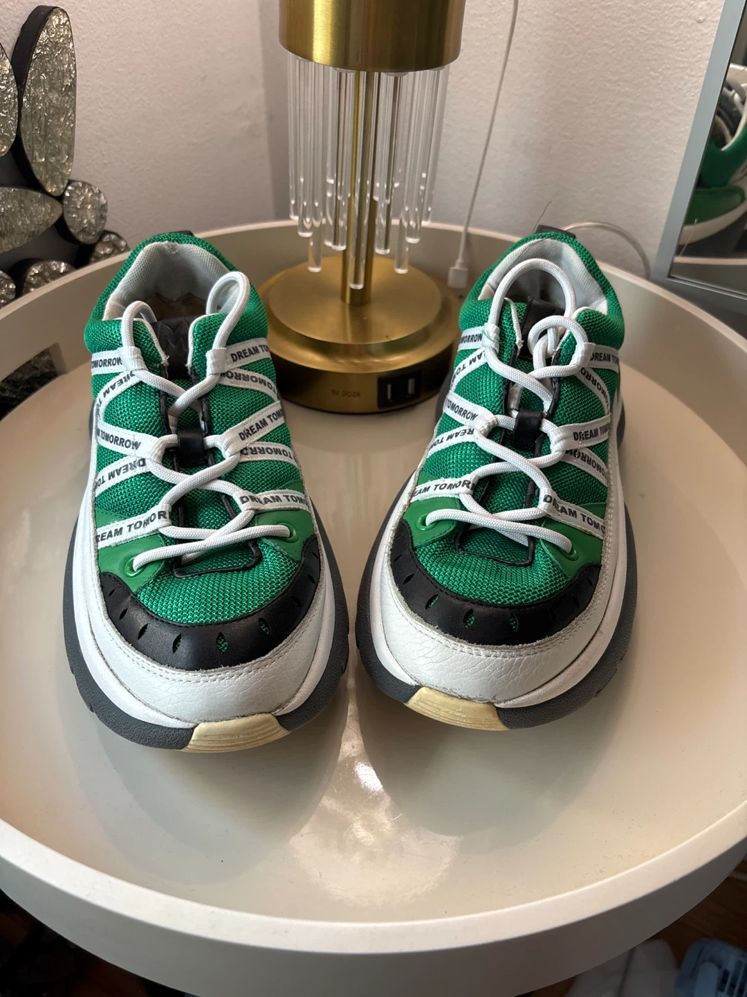Selling a pair of Maje sneakers in a green and white colorway. The shoes feature the words "Dream Tomorrow" on the laces. They are in great condition!