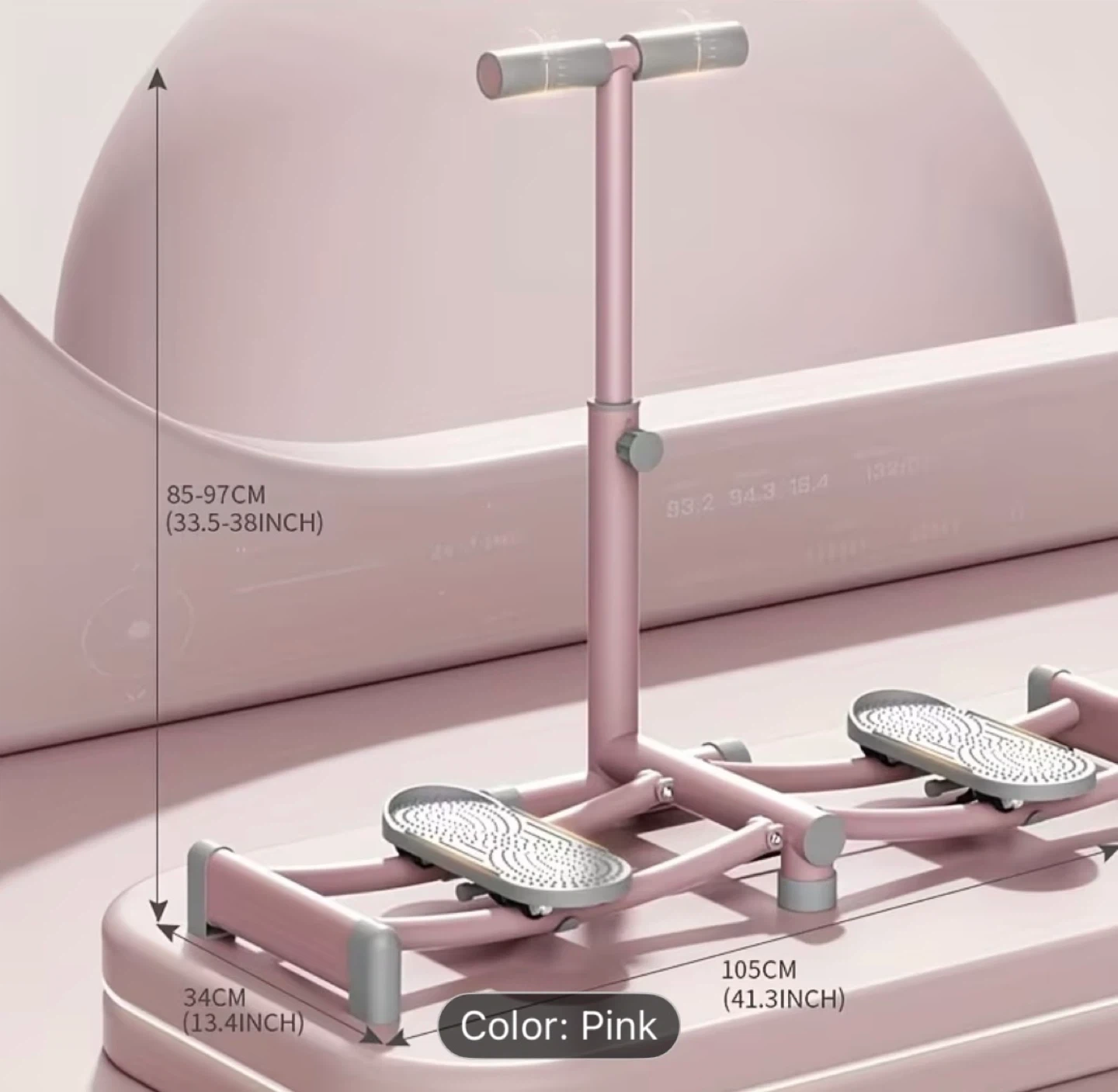 This ski exercise machine is great for a quick workout. It's easy to store and features adjustable height. Dimensions: 105cm (41.3IN) length, 34cm (13.4IN) height, and 85-97cm (33.5-38IN) adjustable height. It's a handy piece of exercise equipment for your home!
