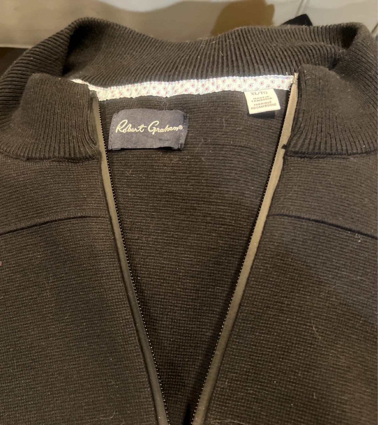 Buy & SellRobert Graham Quarter Zip Sweater XL/TGRobert Graham Quarter Zip Sweater XL/TG$56Robert Graham quarter zip sweater in black. Size XL/TG. Made in Cambodia.ConditionNewSizeXLBrandRobert GrahamWHERE TO MEETCheck LocationView MapSELLERNateS Boucherie100 reviews0 chats·0 favorites·9 viewsSEND CHAT TO SELLERHi Nate! I’m interested in your listing.Hi Nate! I’m interested in your listing.Get the Karrot app to chatSign In to chat
