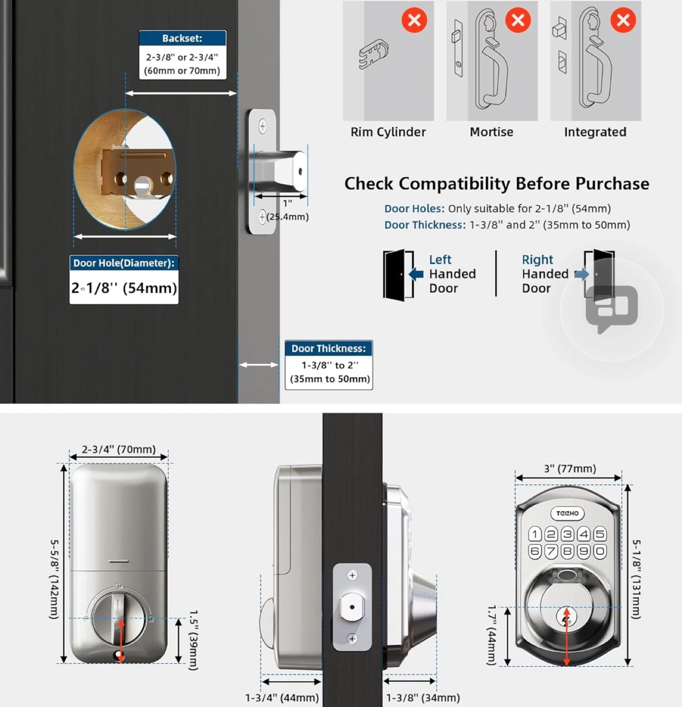 TECHO Smart Door Lock with Keypad and Fingerprint Scanner