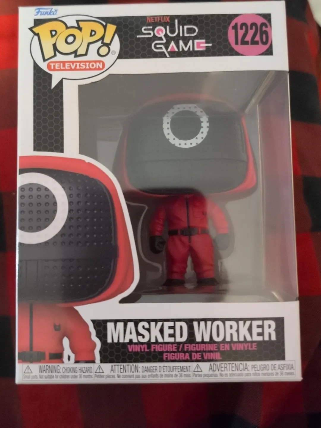 Selling a Funko Pop! Television figure from the Netflix series Squid Game. This is the Masked Worker, figure number 1226. It's a vinyl figure and comes in its original box!