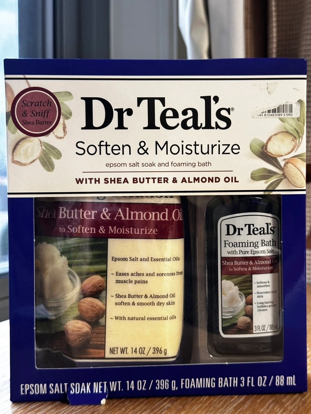 Epsom salt soak and foaming bath. Shea butter and almond oil. Soothes aches and soreness. Softens and smooths dry skin. Natural essential oils. New!