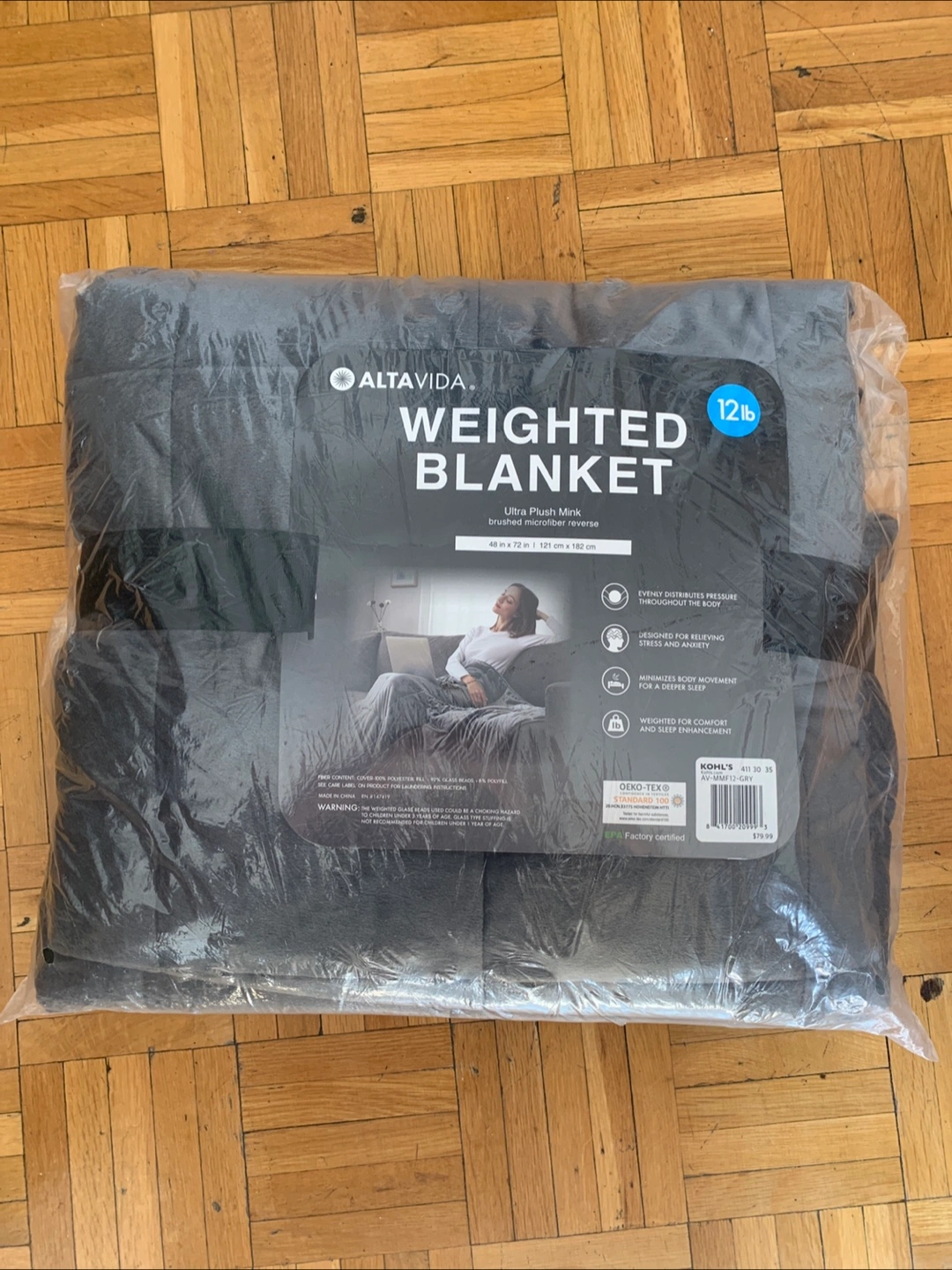 Altavida Weighted Blanket - 12 lbs - Charcoal Grey (New)