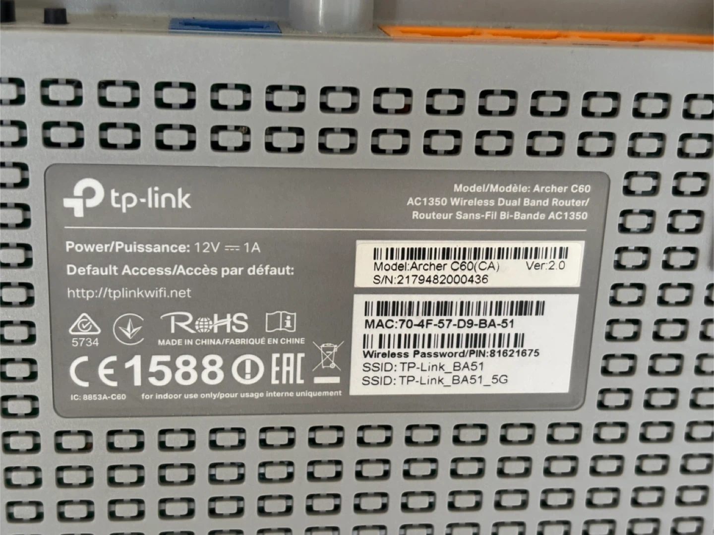 TP-Link Archer C60 (AC1350) WiFi Router – Works Perfectly