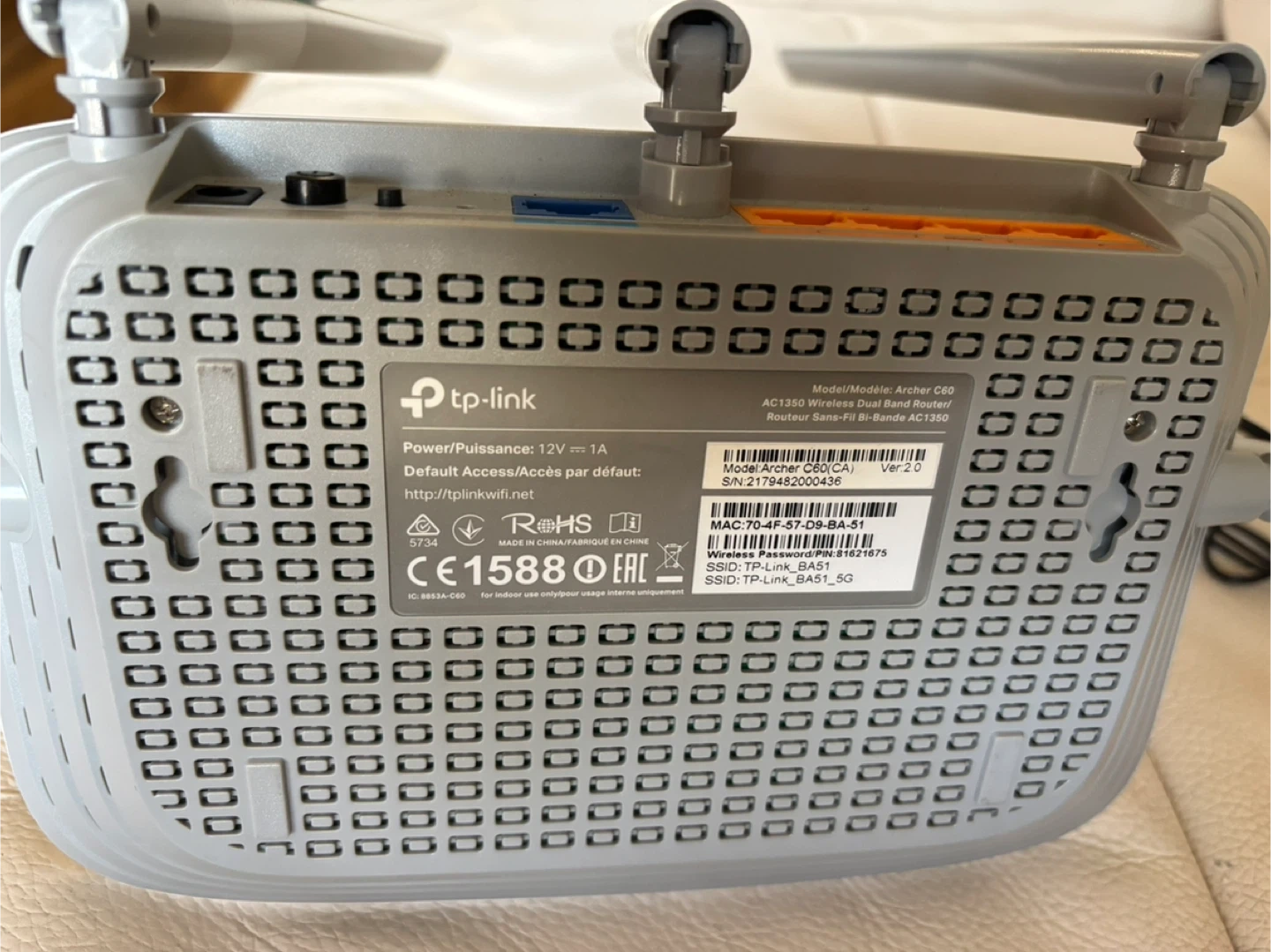 TP-Link Archer C60 (AC1350) WiFi Router – Works Perfectly