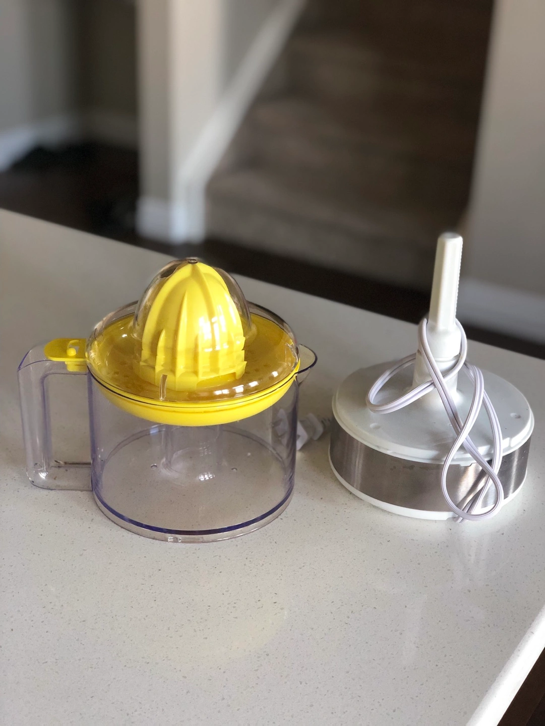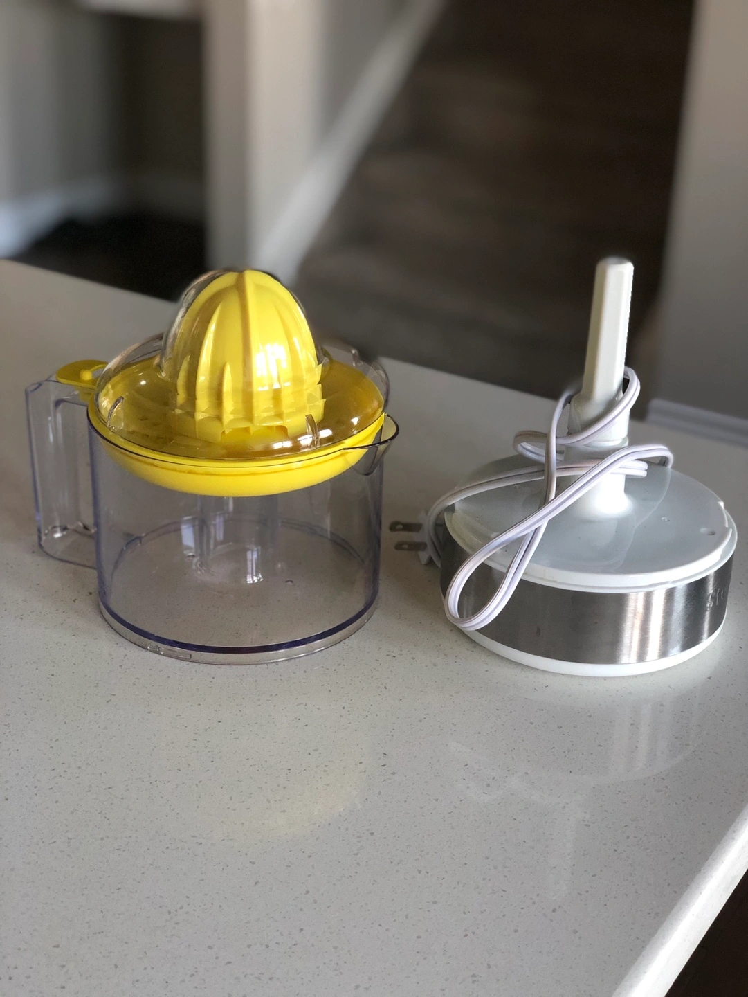 Electric citrus juicer. Comes with two reamer cones. Works great for juicing lemons, limes, and oranges. Easy to make orange juice. We used it 3 times only. Moving sale.