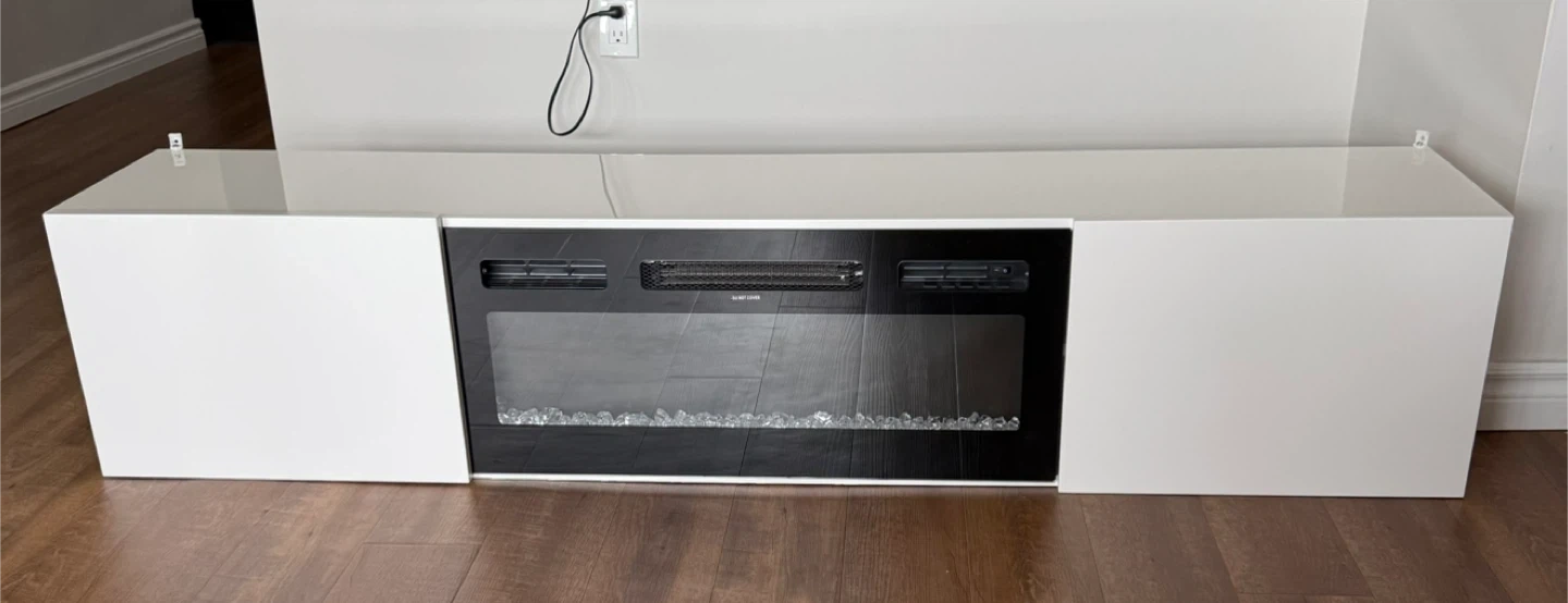86Selling an electric fireplace TV stand with built in heater. It's in great condition and ready to add some warmth and style to your living space! The stand is white and features a sleek, modern design. Perfect for cozy nights in front of the TV.